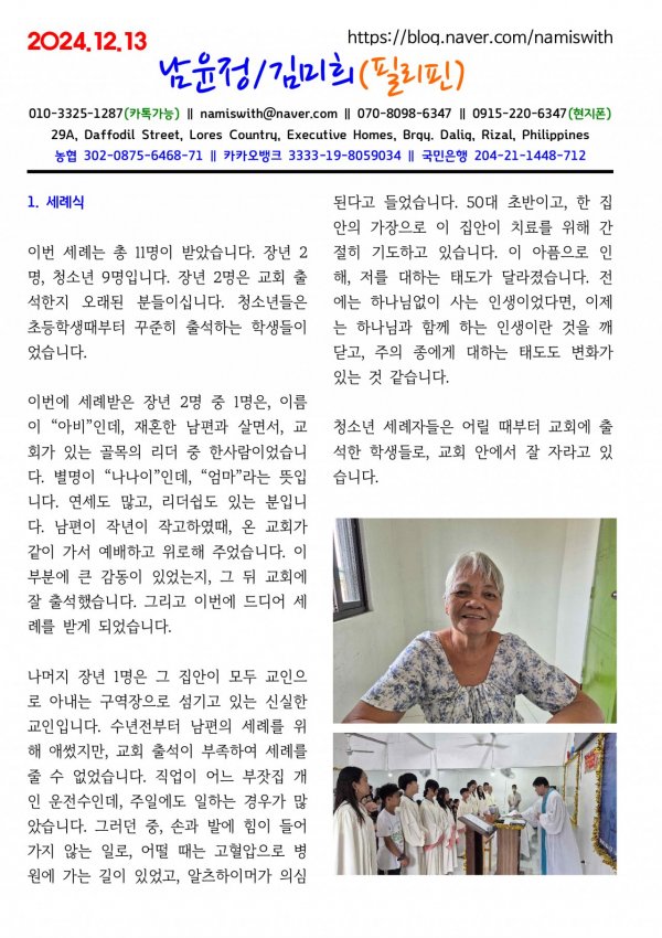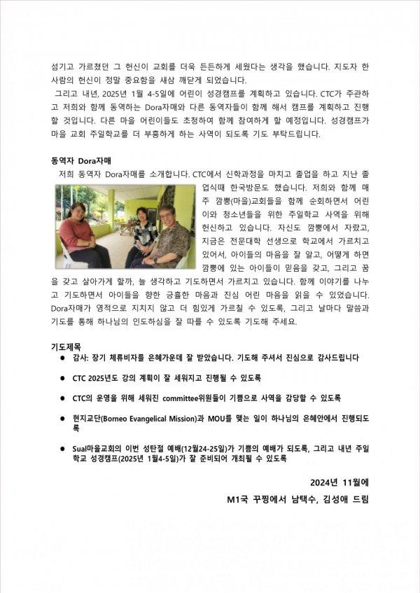 필리핀 남윤정/김미희 선교사 기도편지입니다. (24년 12월)