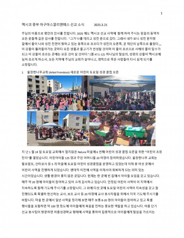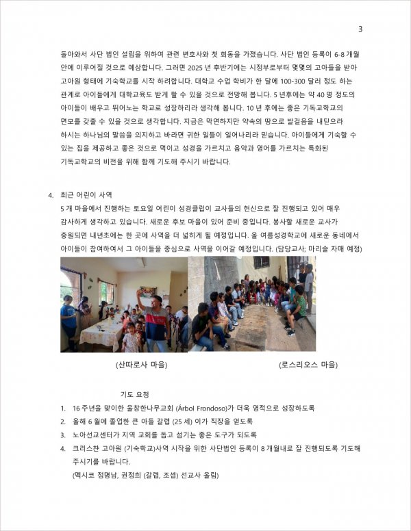 멕시코 정명남 선교사님 선교편지(2025년 3월)