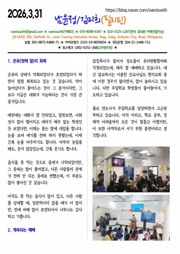 [필리핀] 남윤정 선교사님 4월 기도편지