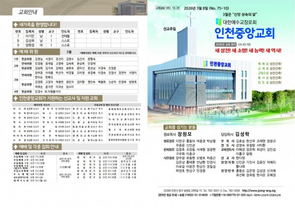 2026년 3월 1일(주) 교회/교우 소식