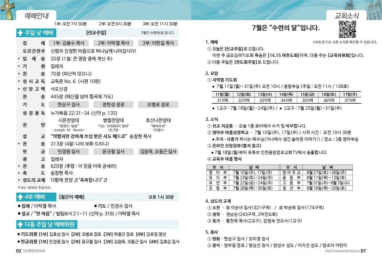2022년 7월 10일(주) 교회/교우 소식