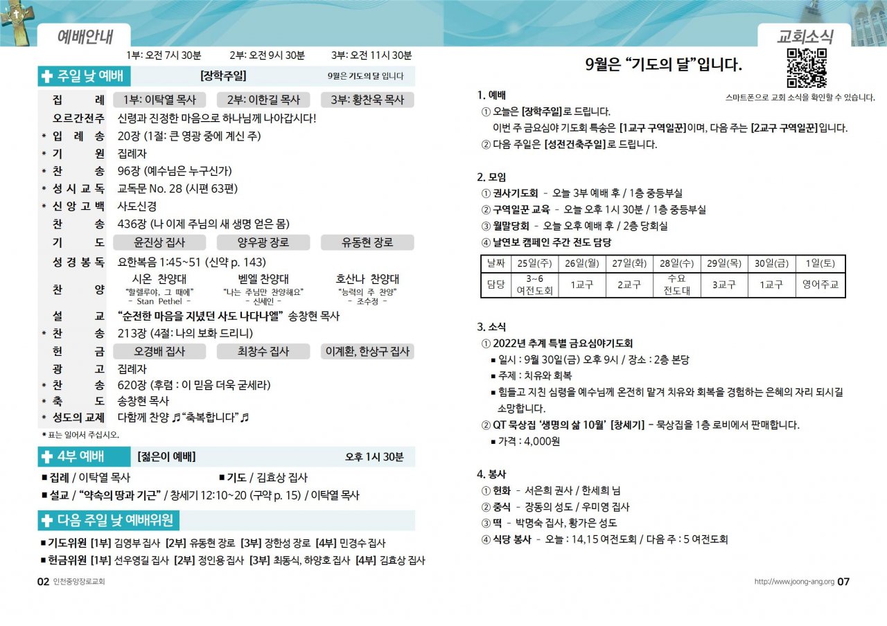 2022년 9월 25일(주) 교회/교우 소식
