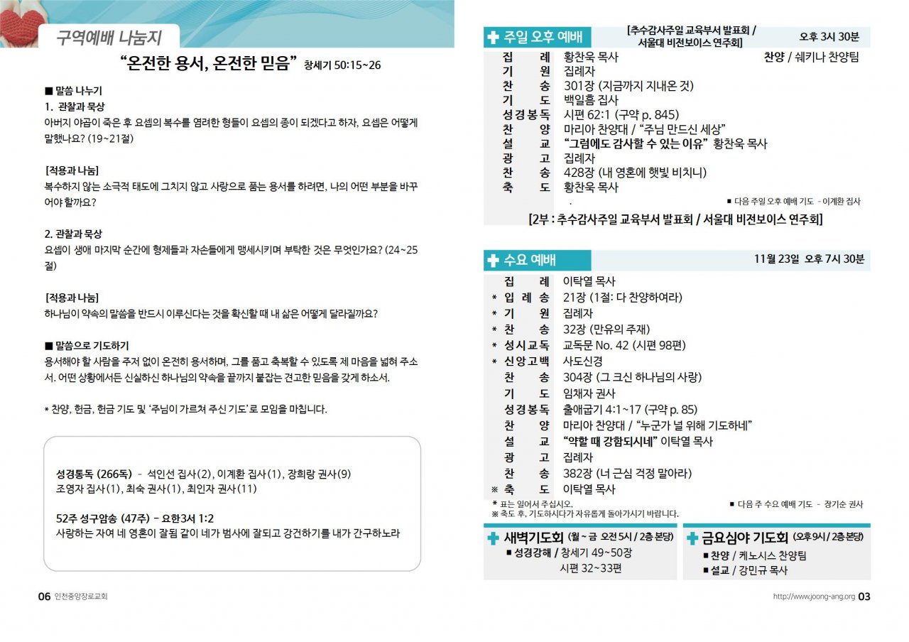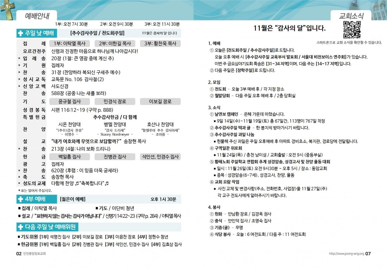 2022년 11월 20일(주) 교회/교우 소식