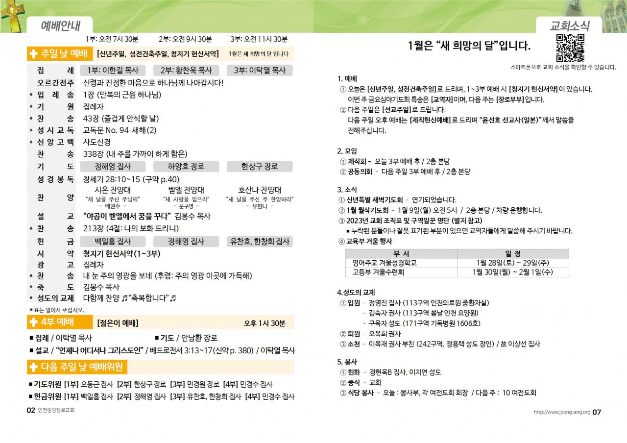 2023년 1월 1일(주) 교회/교우 소식