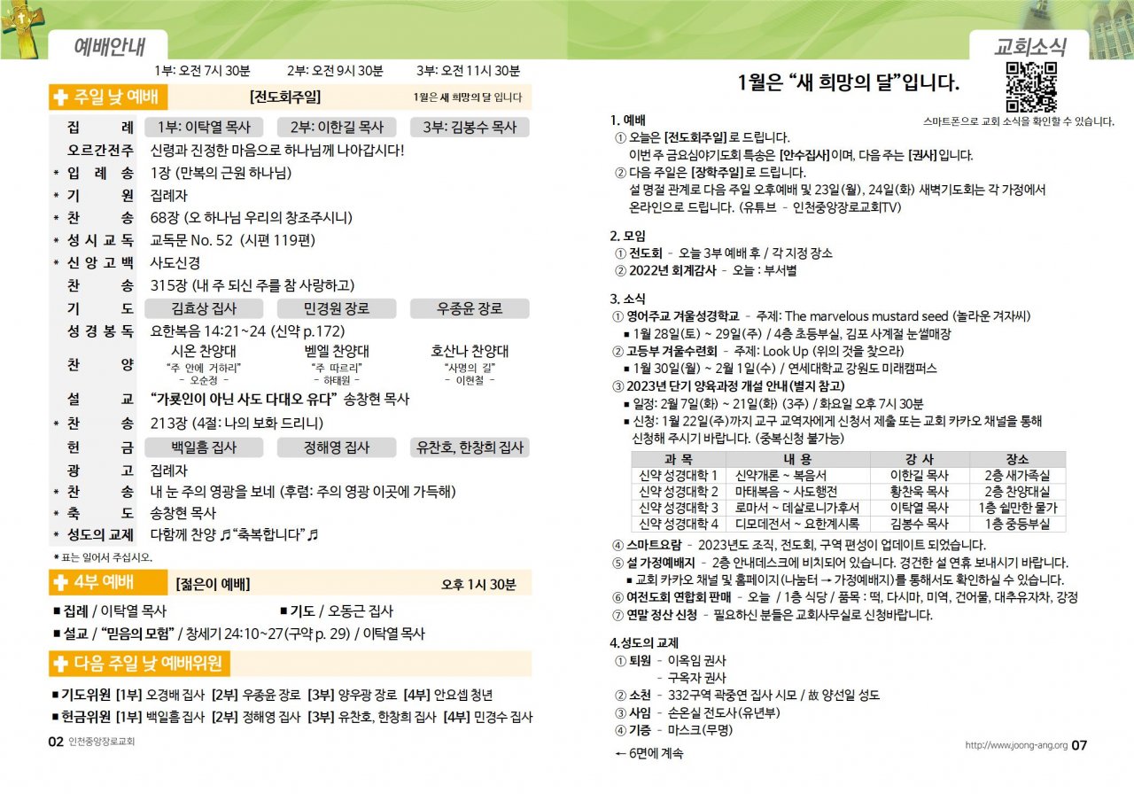 2023년 1월 15일(주) 교회/교우 소식