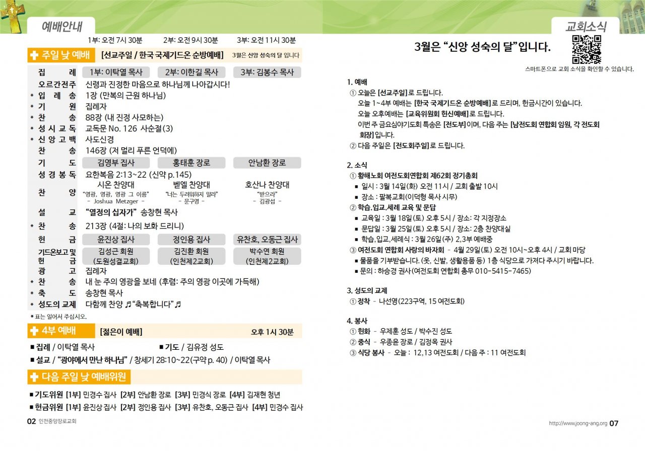 2023년 3월 12일(주) 교회/교우 소식
