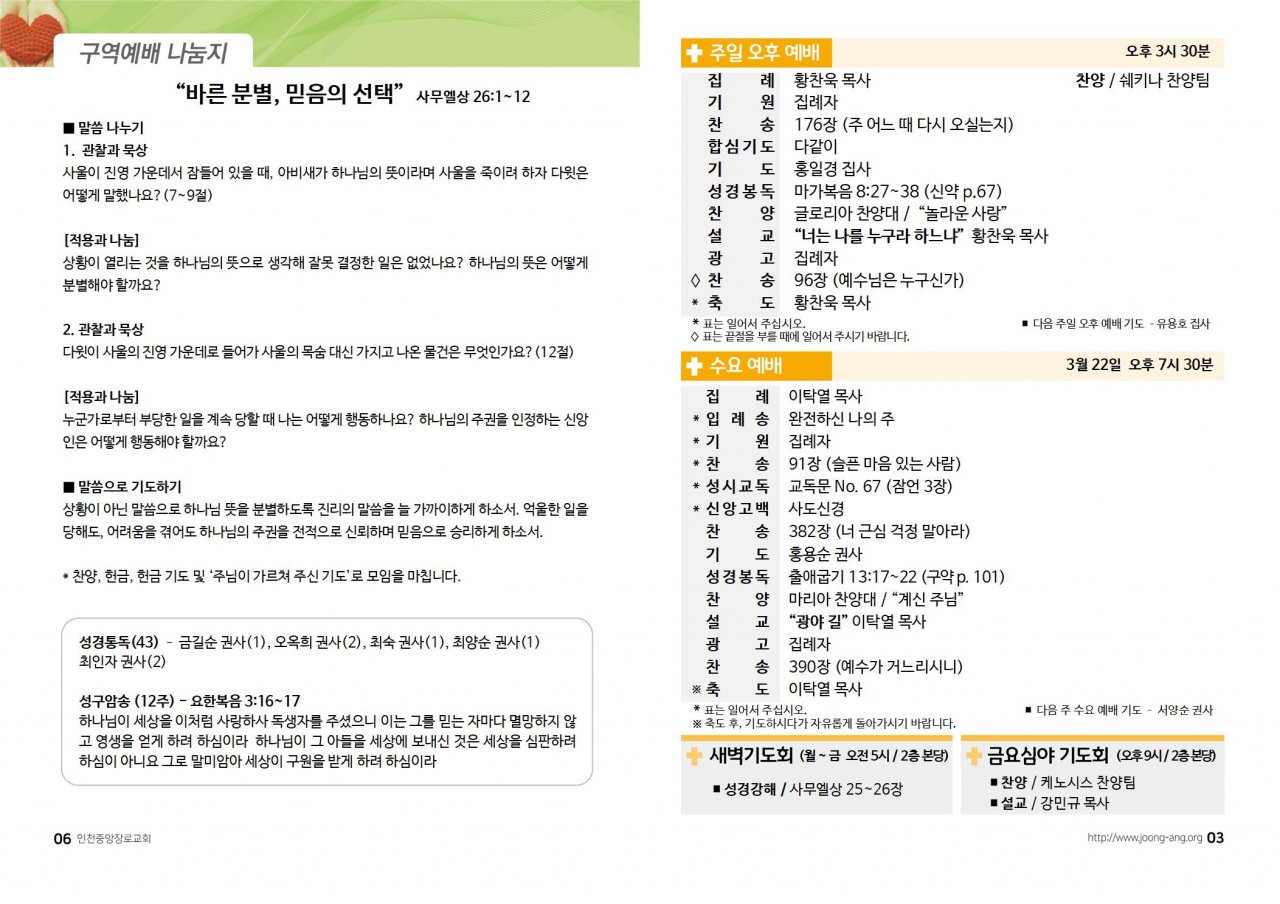 2023년 3월 19일(주) 교회/교우 소식