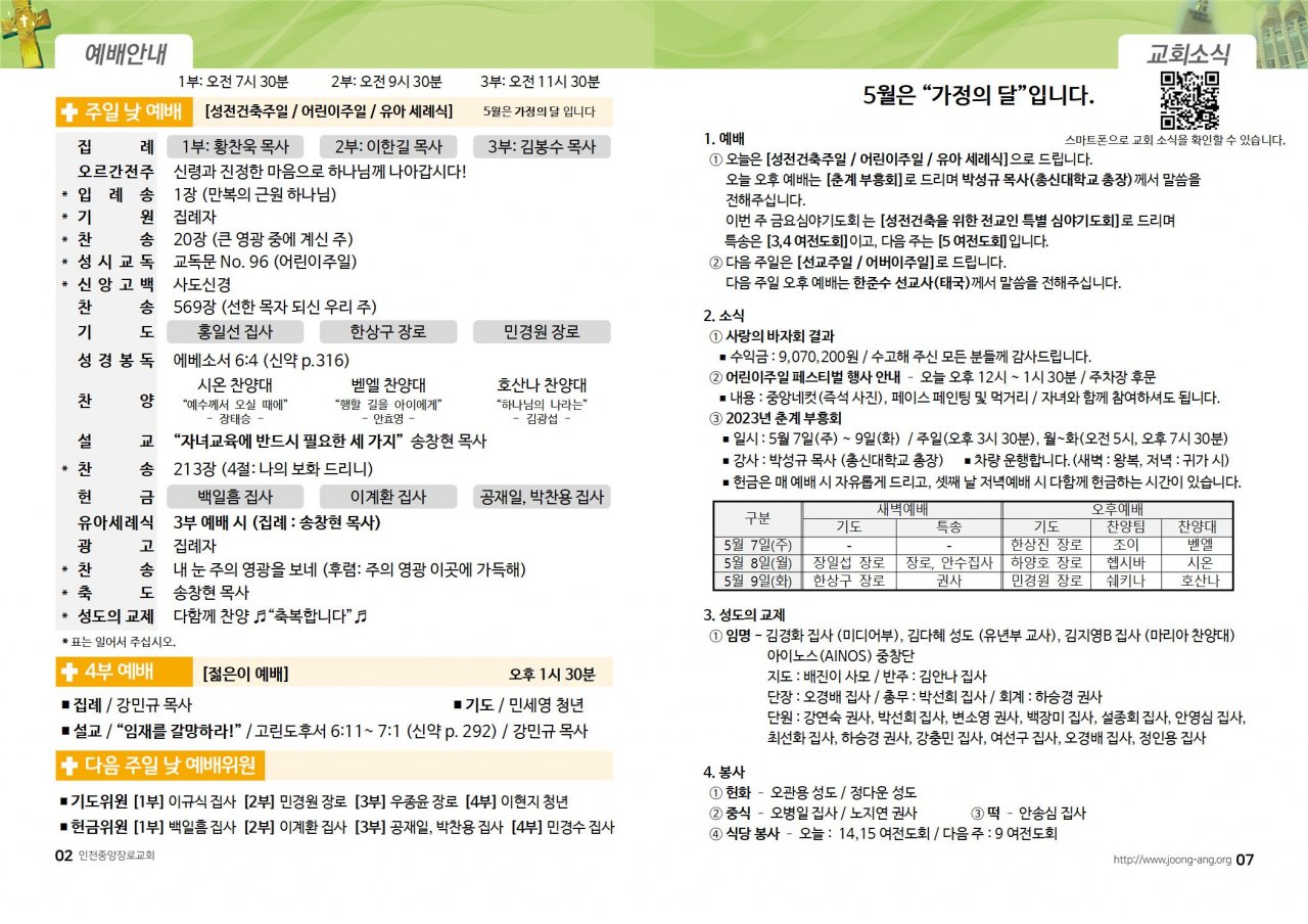 2023년 5월 7일(주) 교회/교우 소식