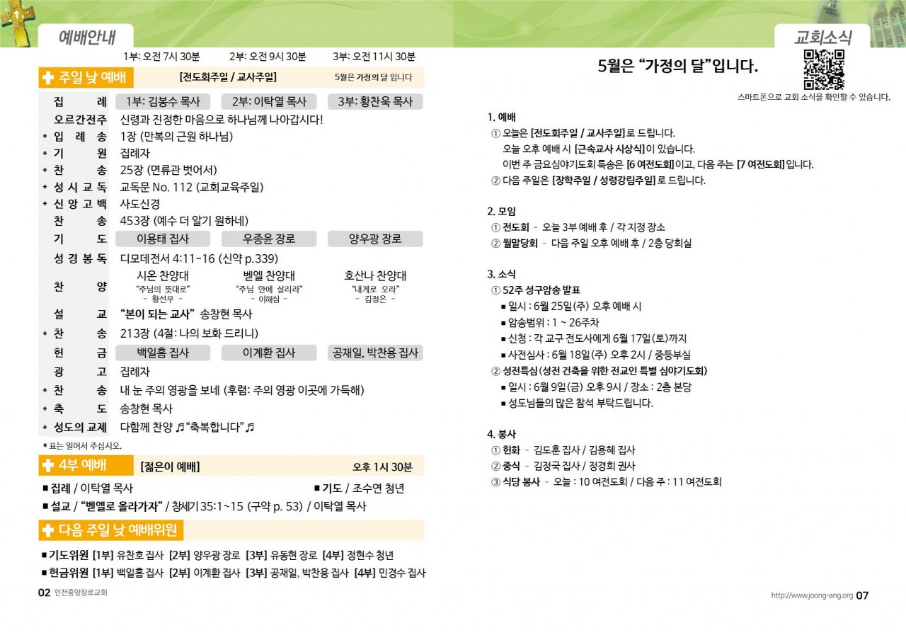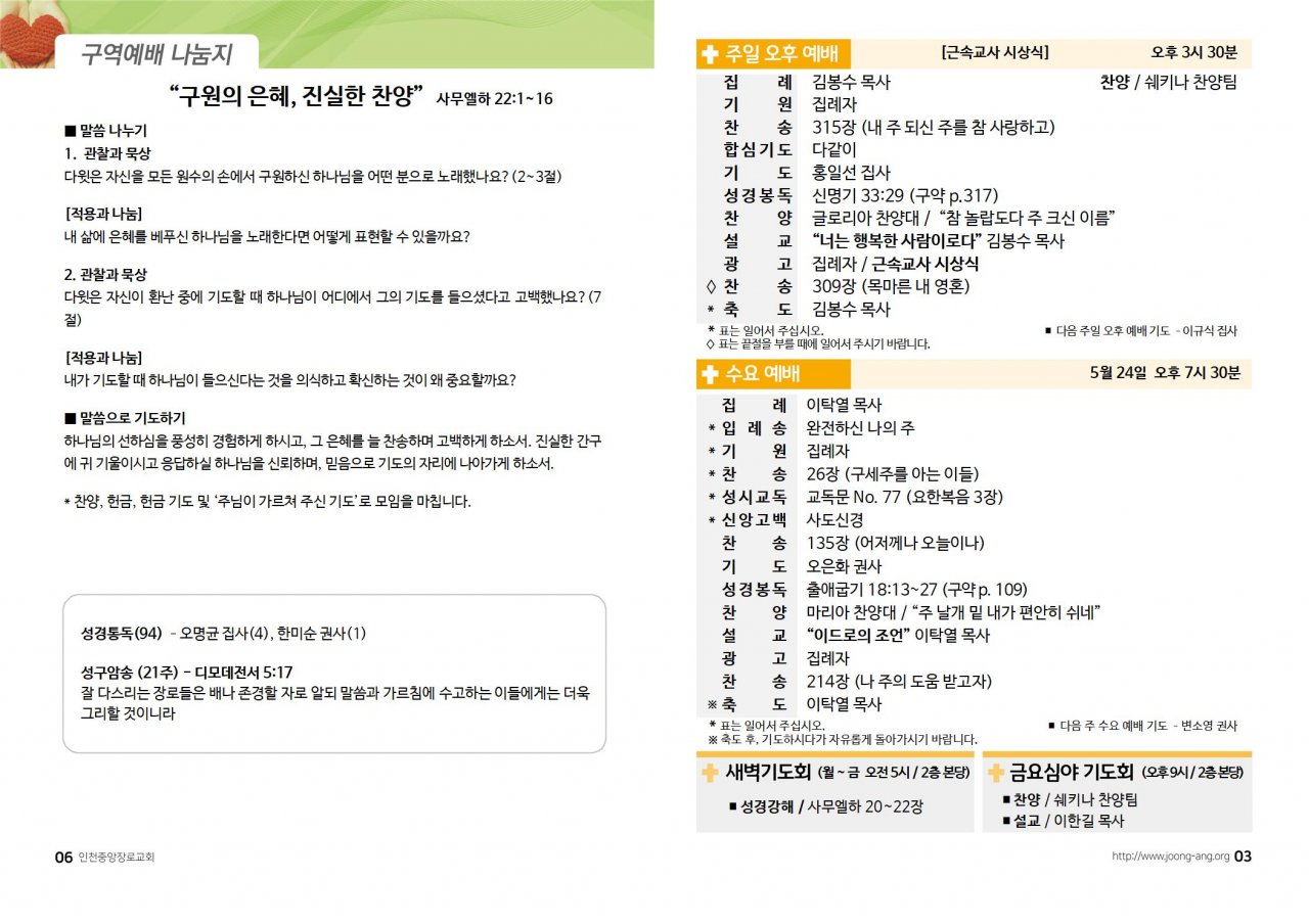 2023년 5월 21일(주) 교회/교우 소식