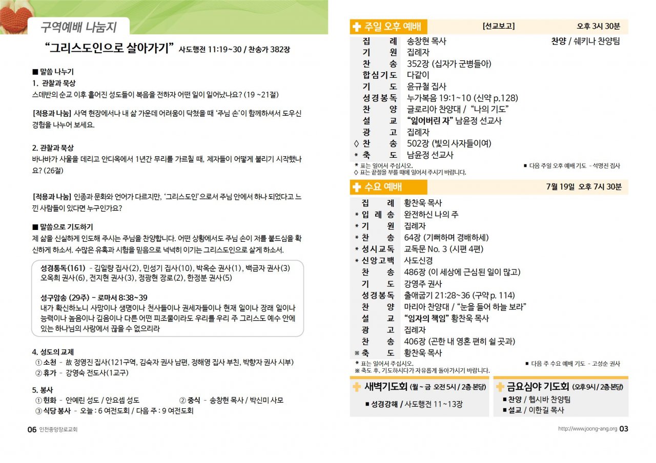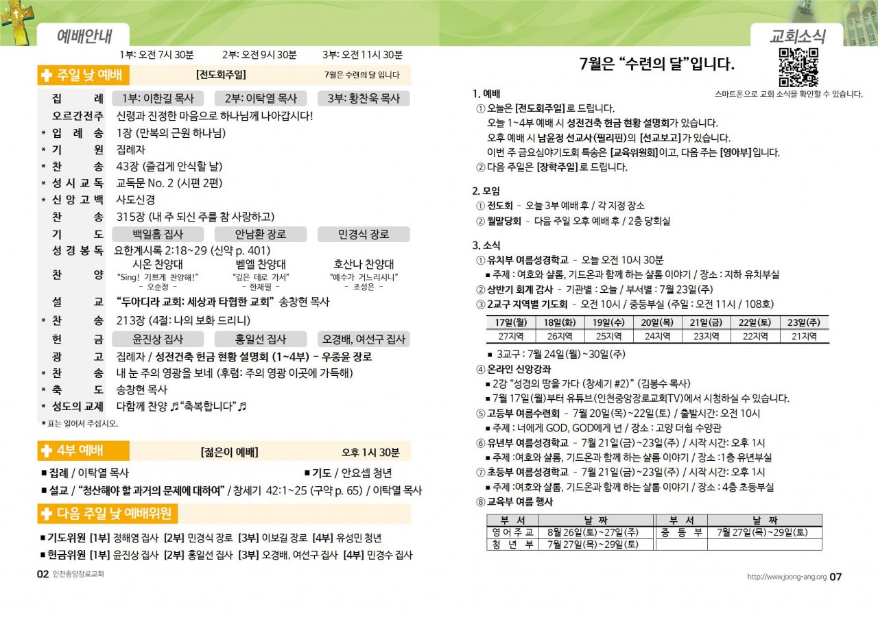 2023년 7월 16일(주) 교회/교우 소식