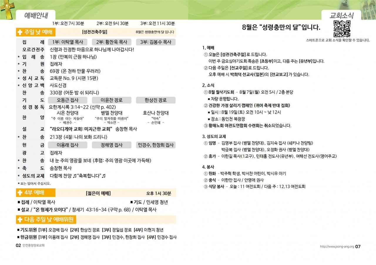 2023년 8월 6일(주) 교회/교우 소식