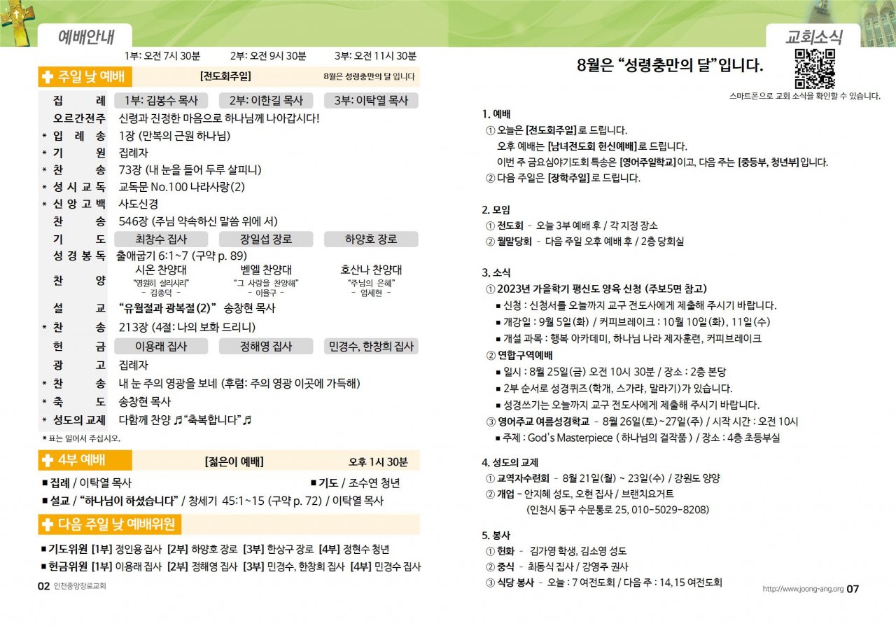 아랫글 : 2023년 8월 13일(주) 교회/교우 소식(관리자)