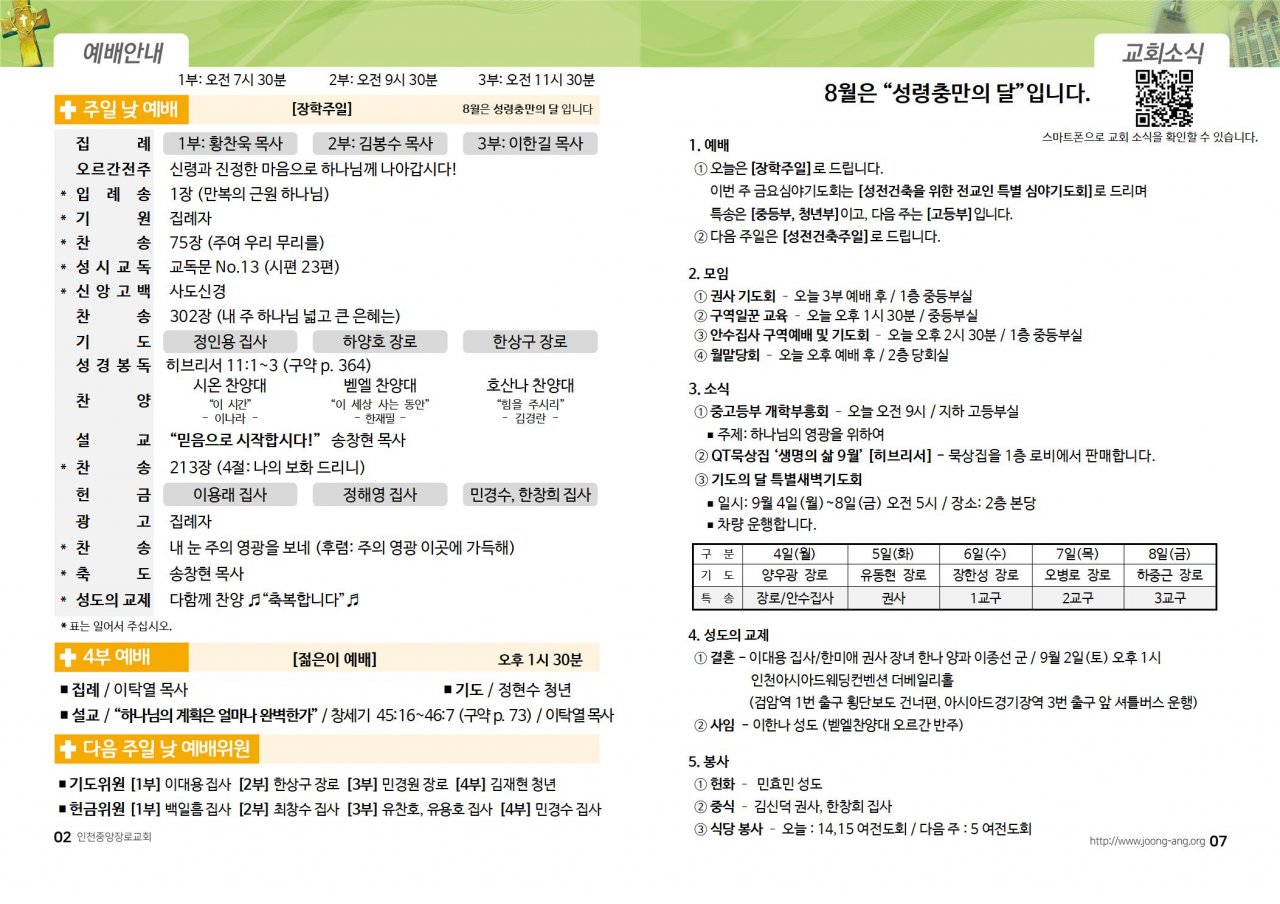 2023년 8월 27일(주) 교회/교우 소식