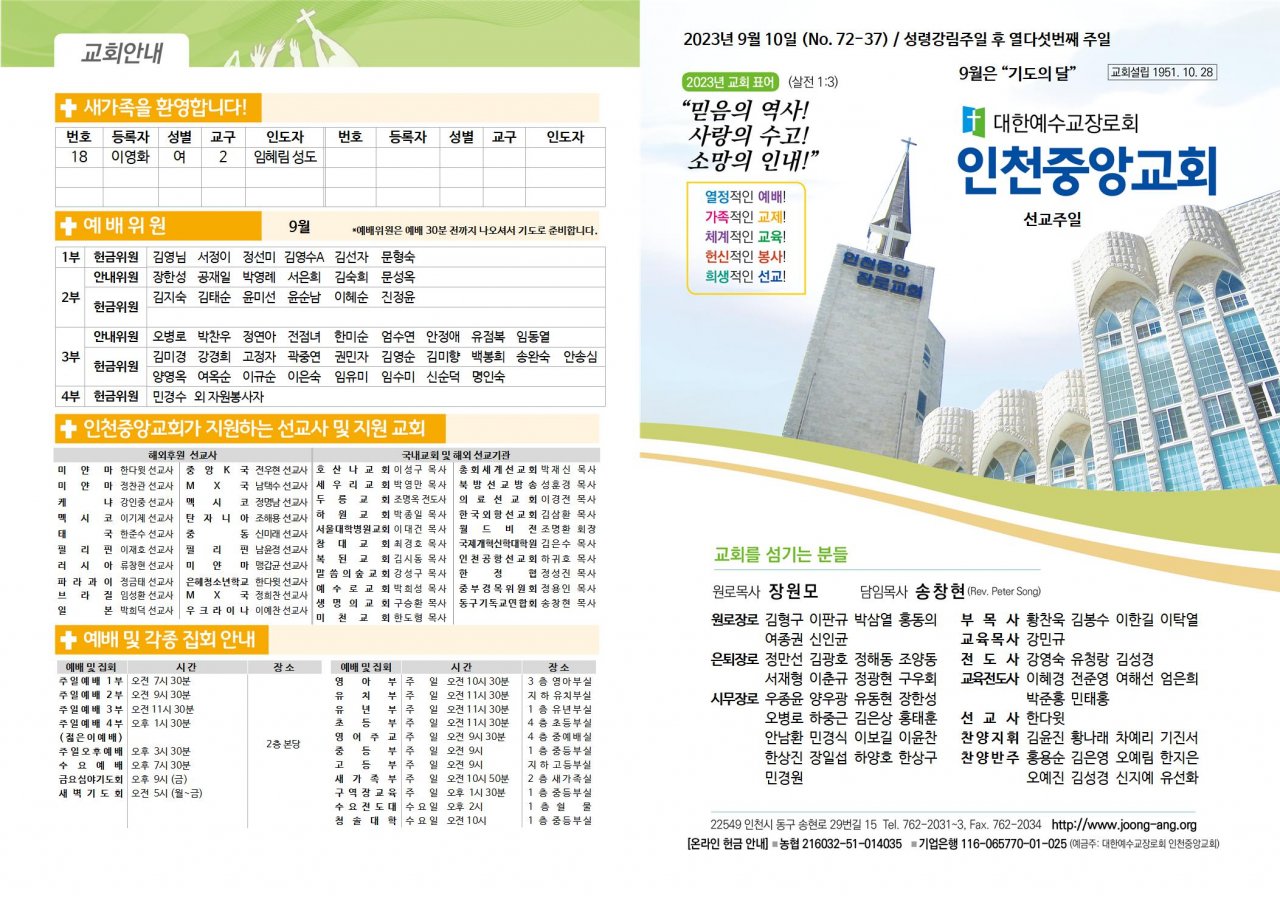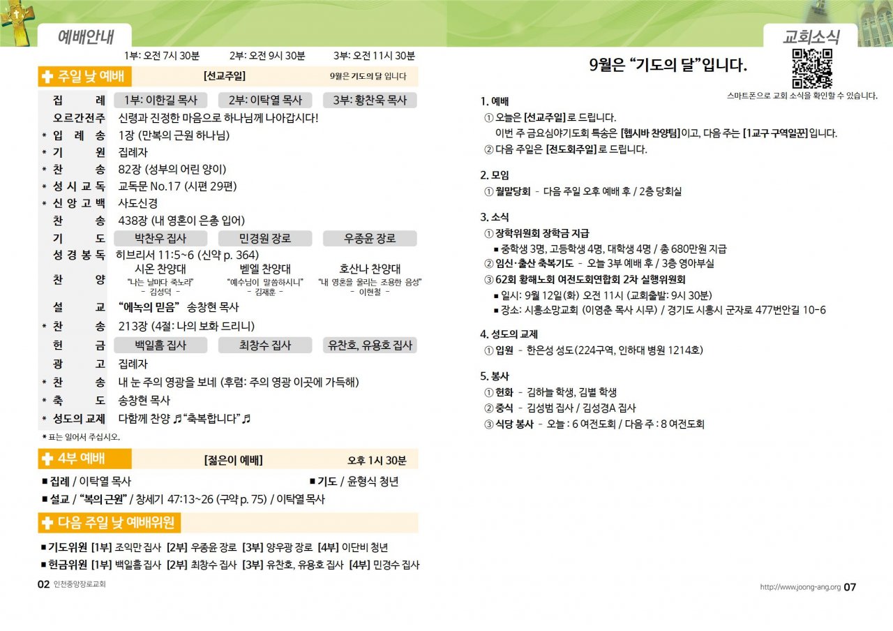 2023년 9월 10일(주) 교회/교우 소식