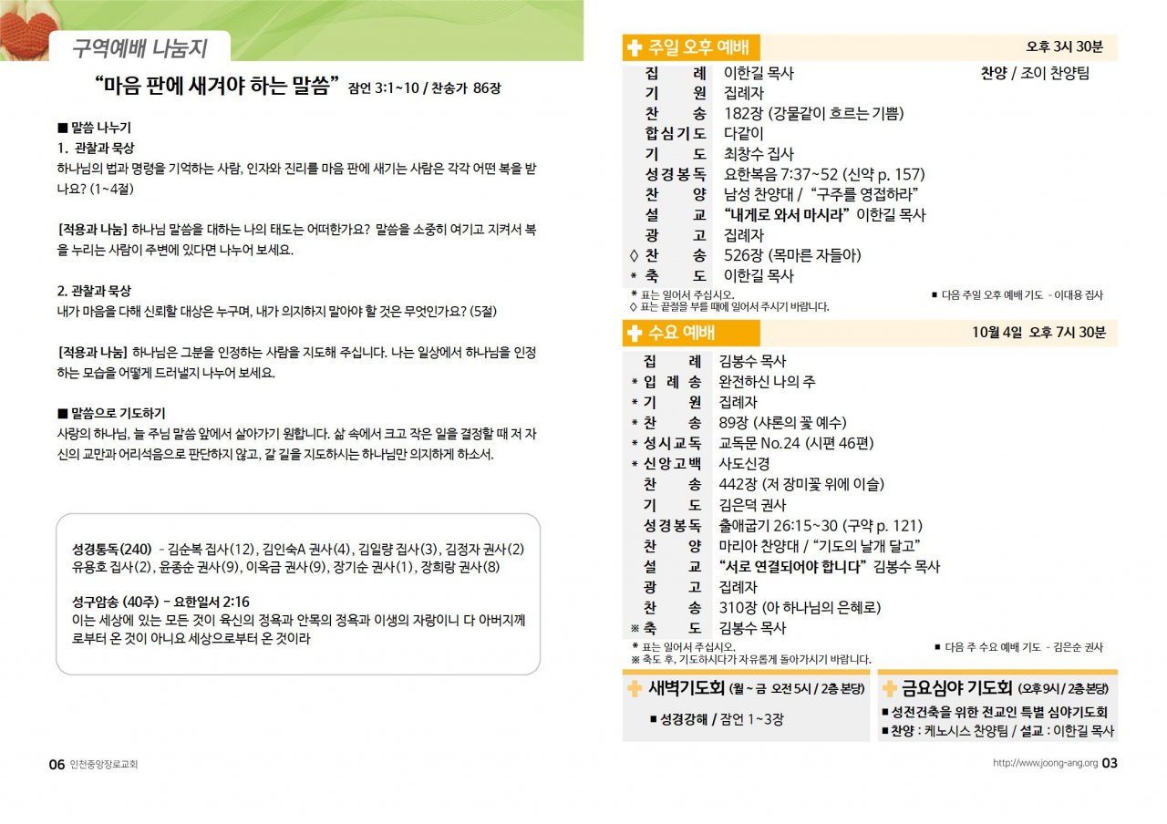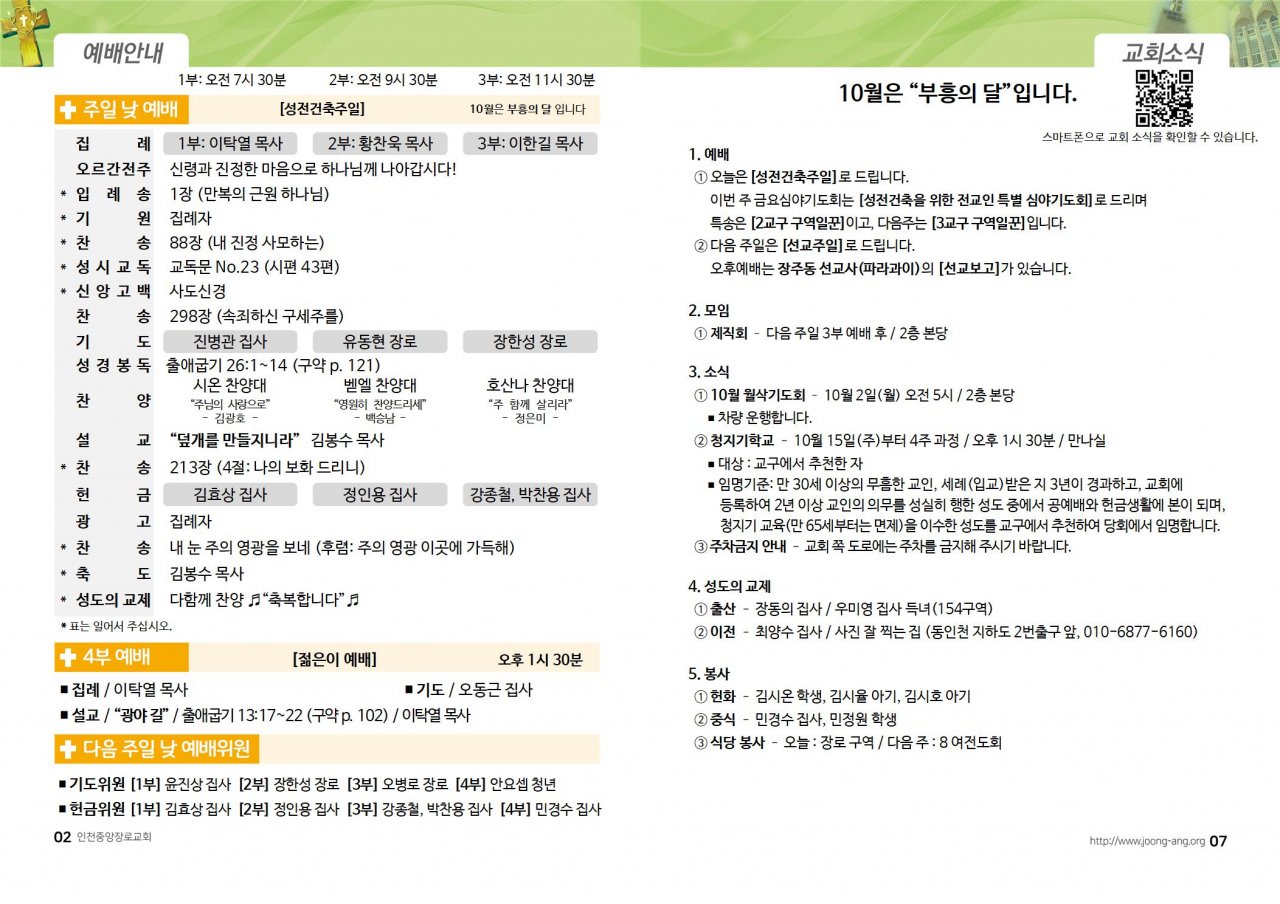 2023년 10월 1일(주) 교회/교우 소식