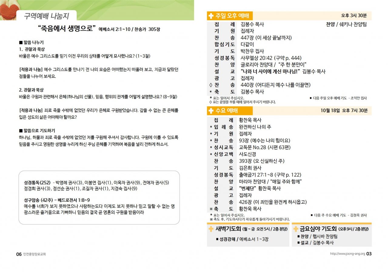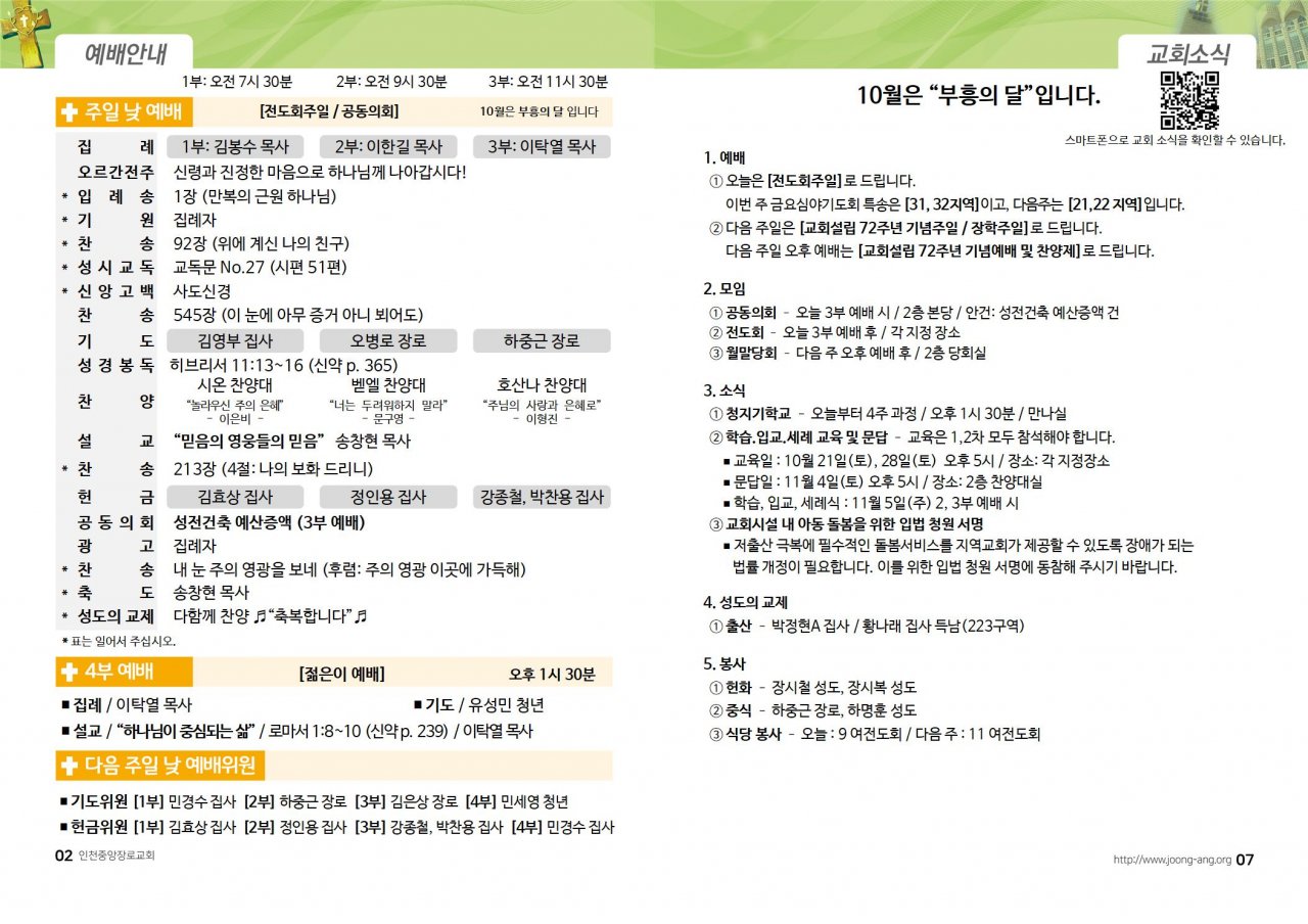 2023년 10월 15일(주) 교회/교우 소식