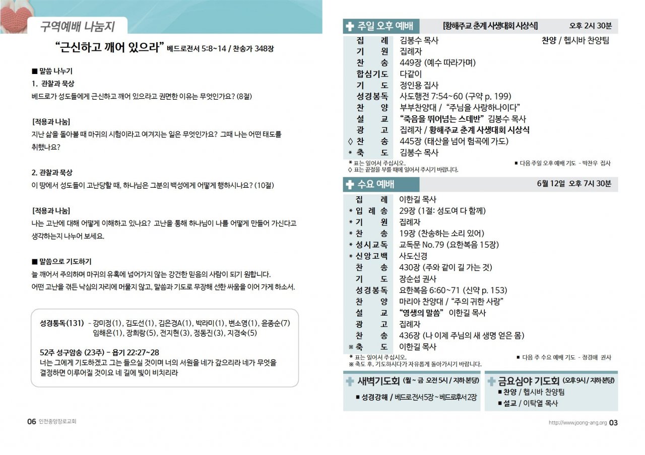 2024년 6월 9일(주) 교회/교우 소식