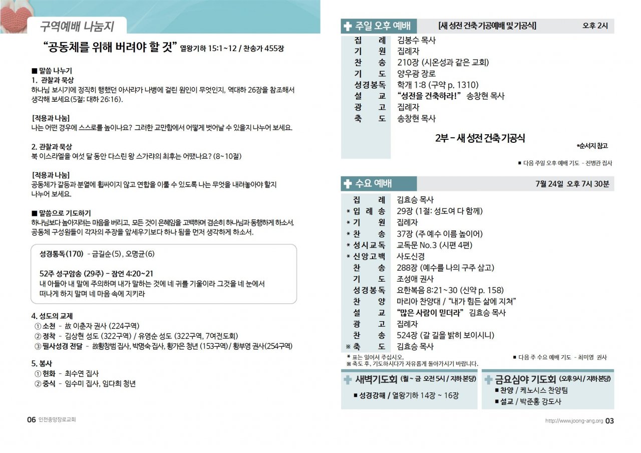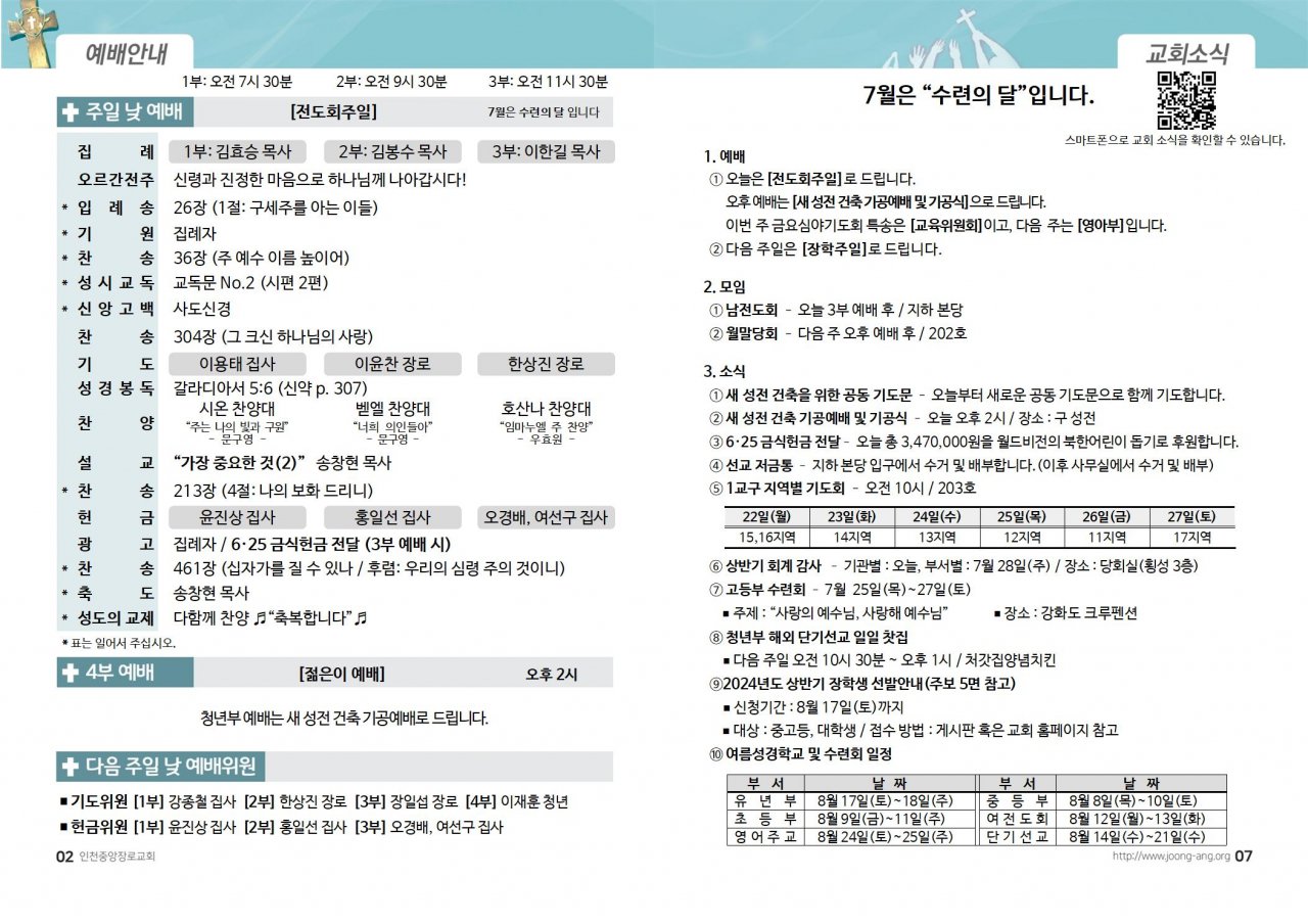 2024년 7월 21일(주) 교회/교우 소식