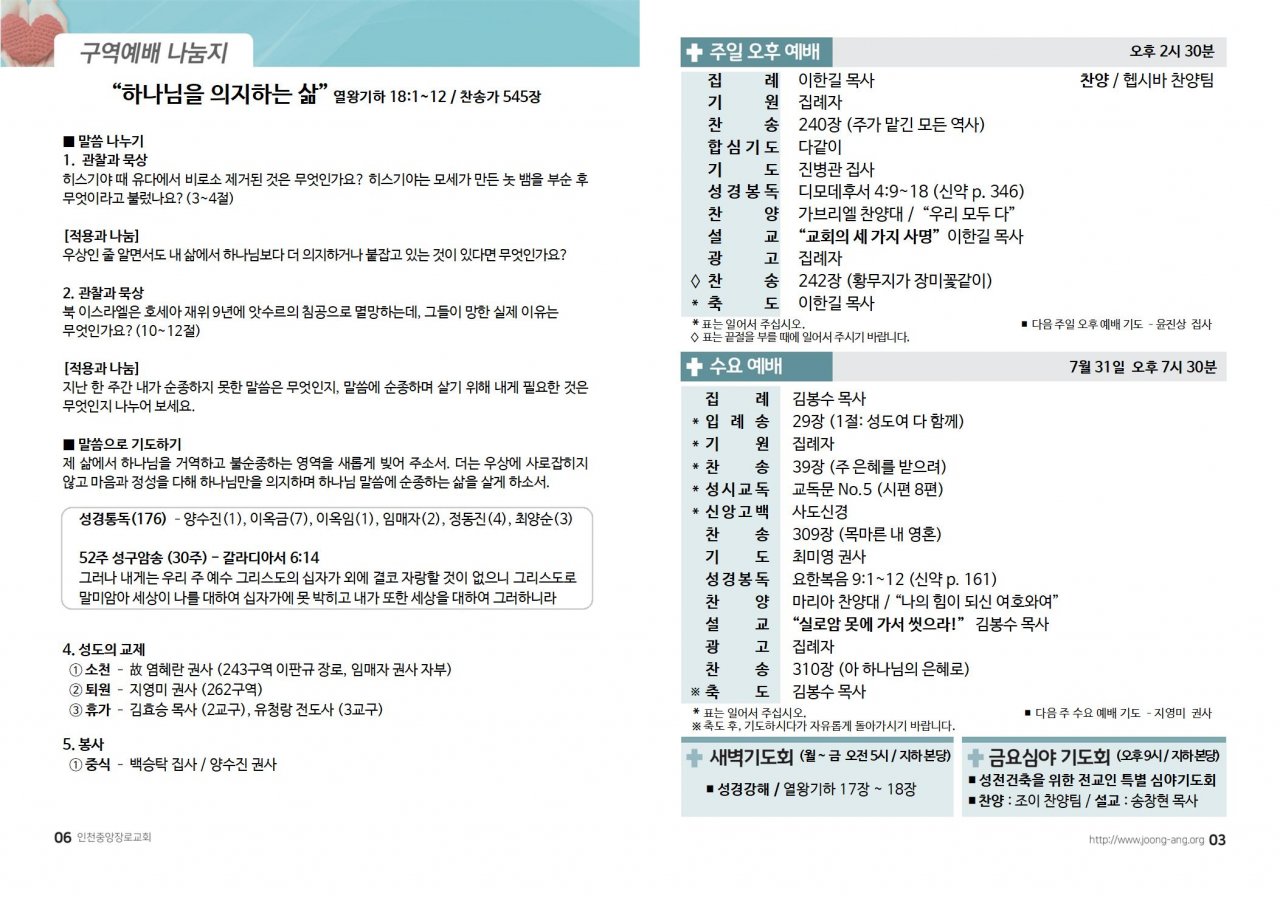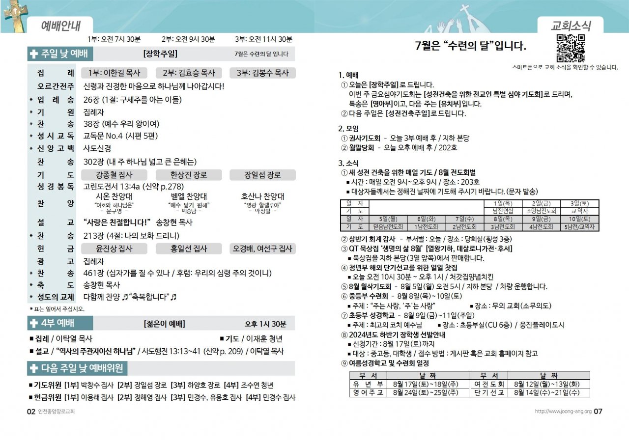 2024년 7월 28일(주) 교회/교우 소식
