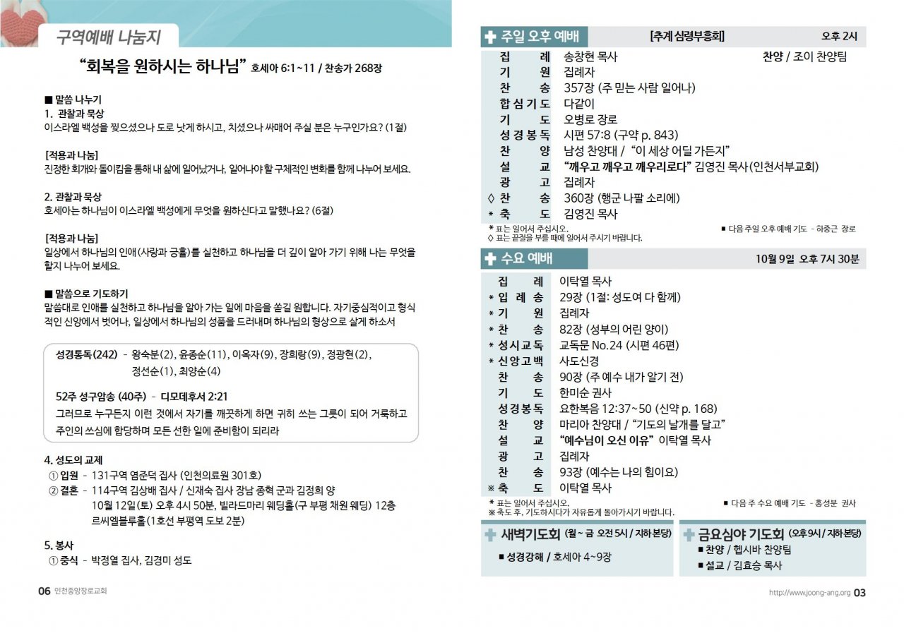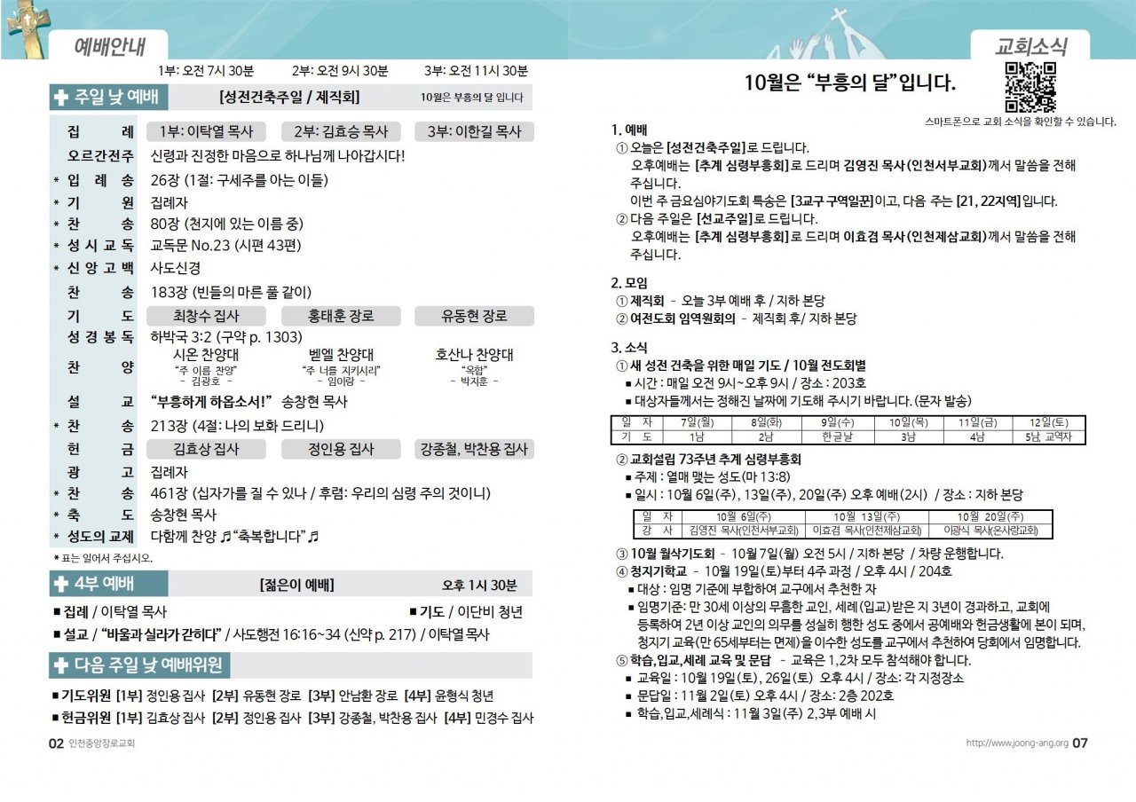 2024년 10월 6일(주) 교회/교우 소식