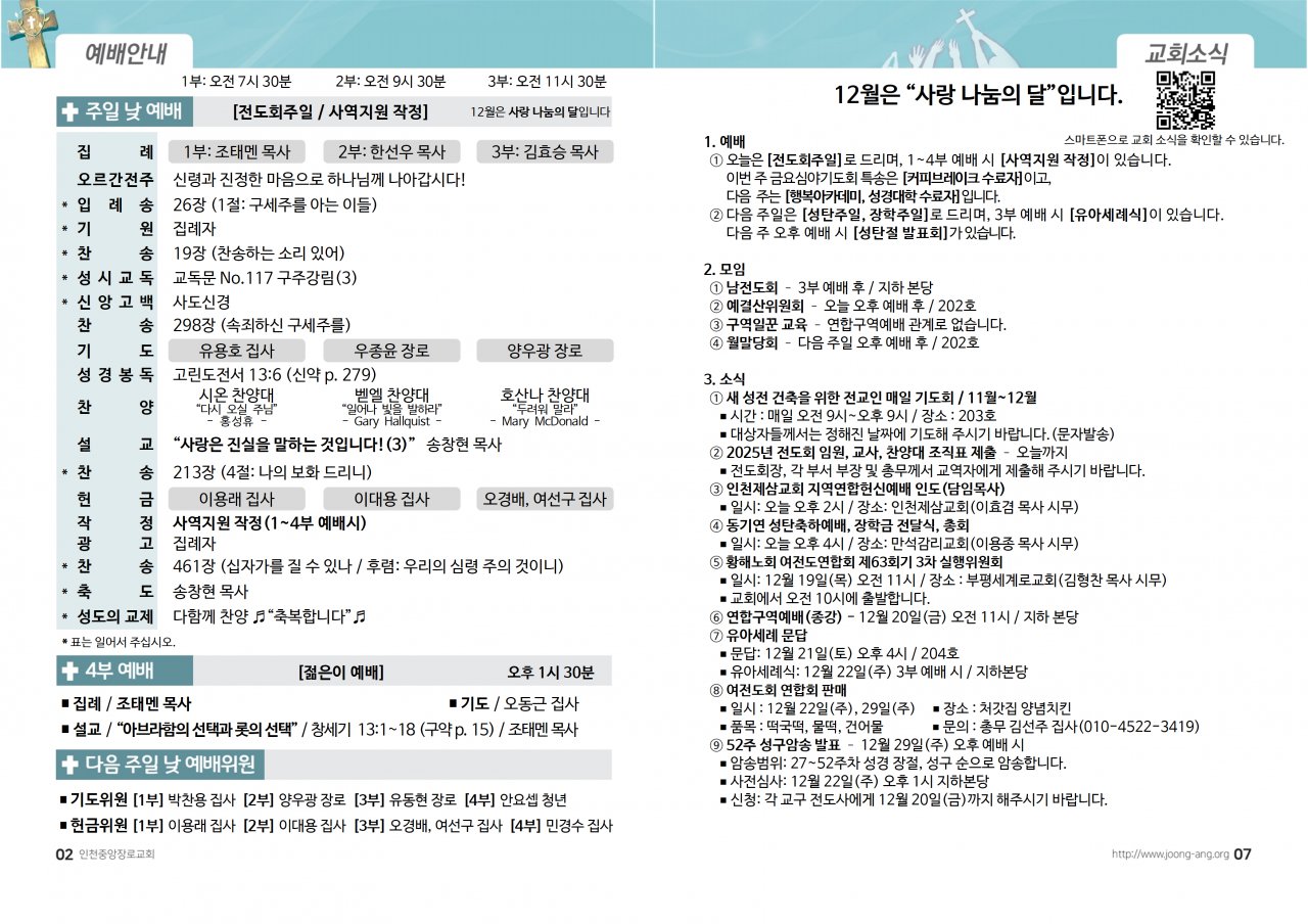 2024년 12월 15일(주) 교회/교우 소식