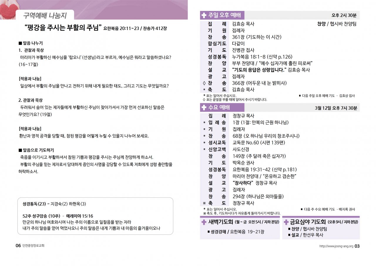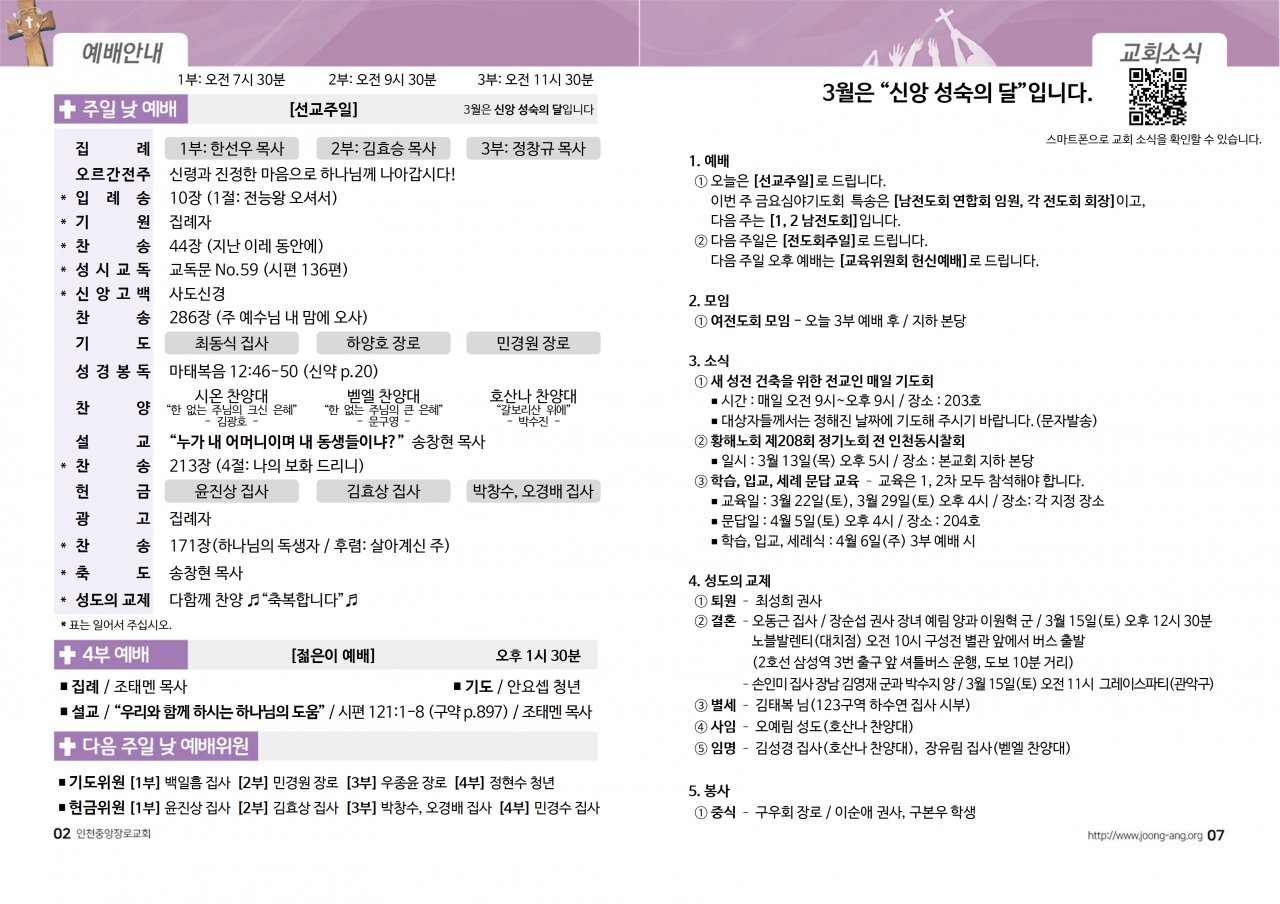 2025년 3월 9일(주) 교회/교우 소식