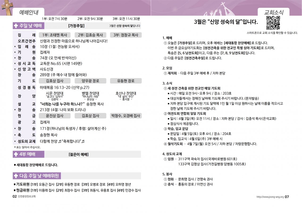 2025년 3월 30일(주) 교회/교우 소식