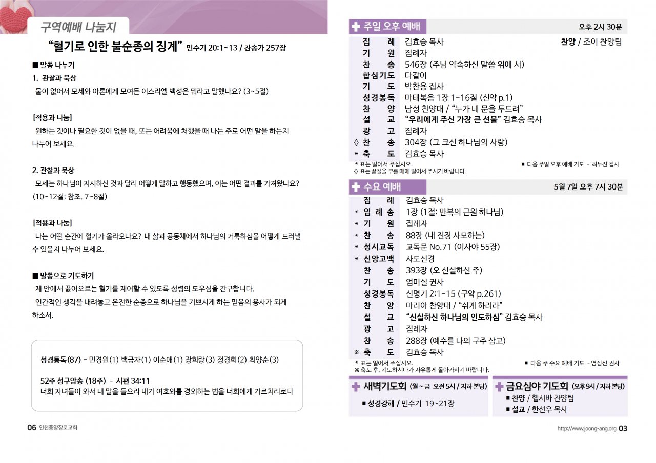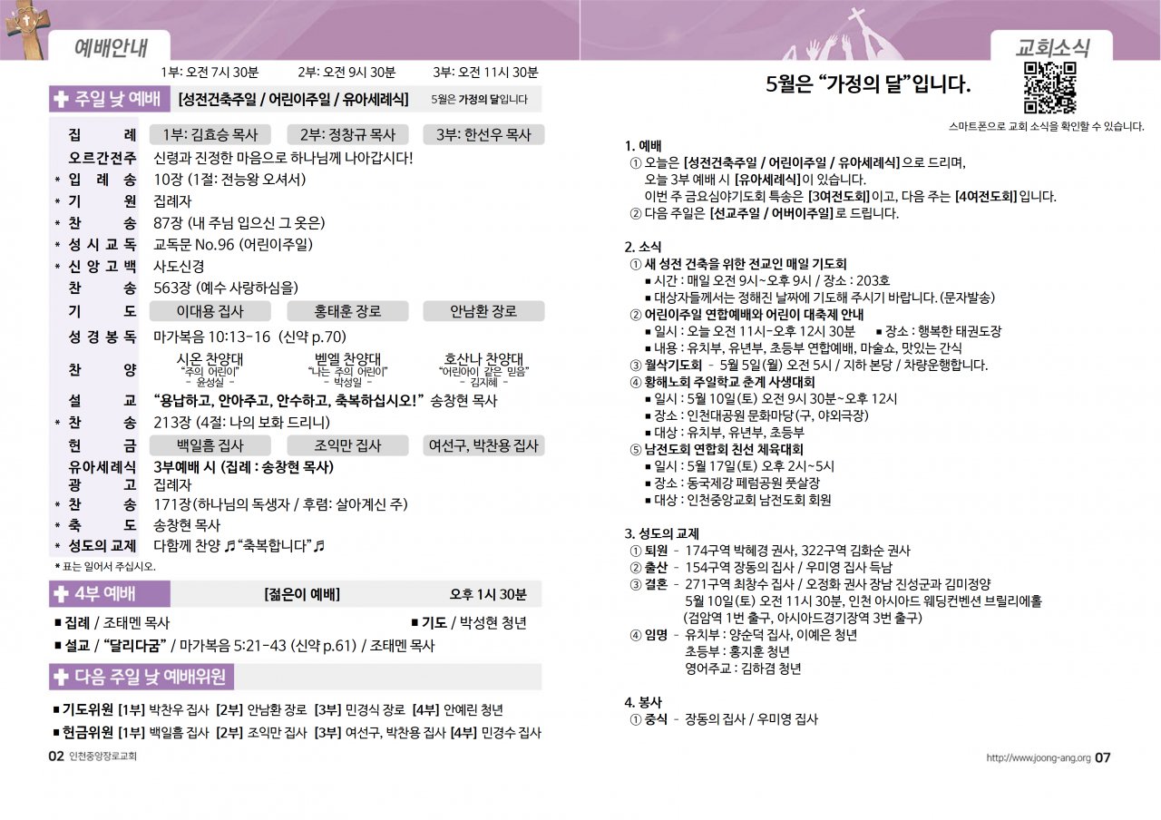 2025년 5월 4일(주) 교회/교우 소식