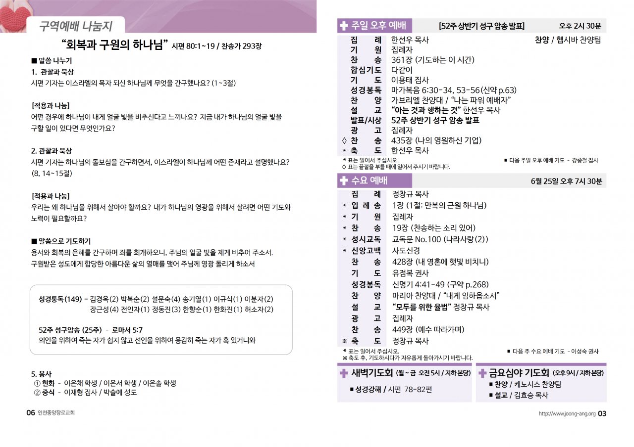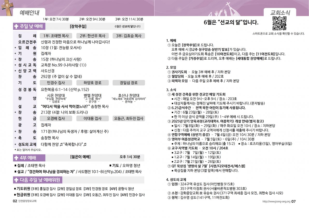 2025년 6월 22일(주) 교회/교우 소식