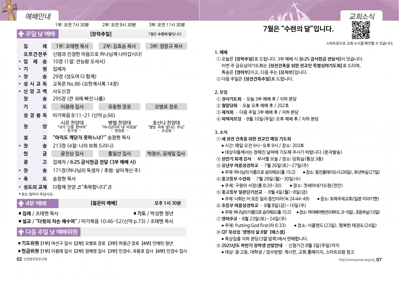 2025년 7월 27일(주) 교회/교우 소식