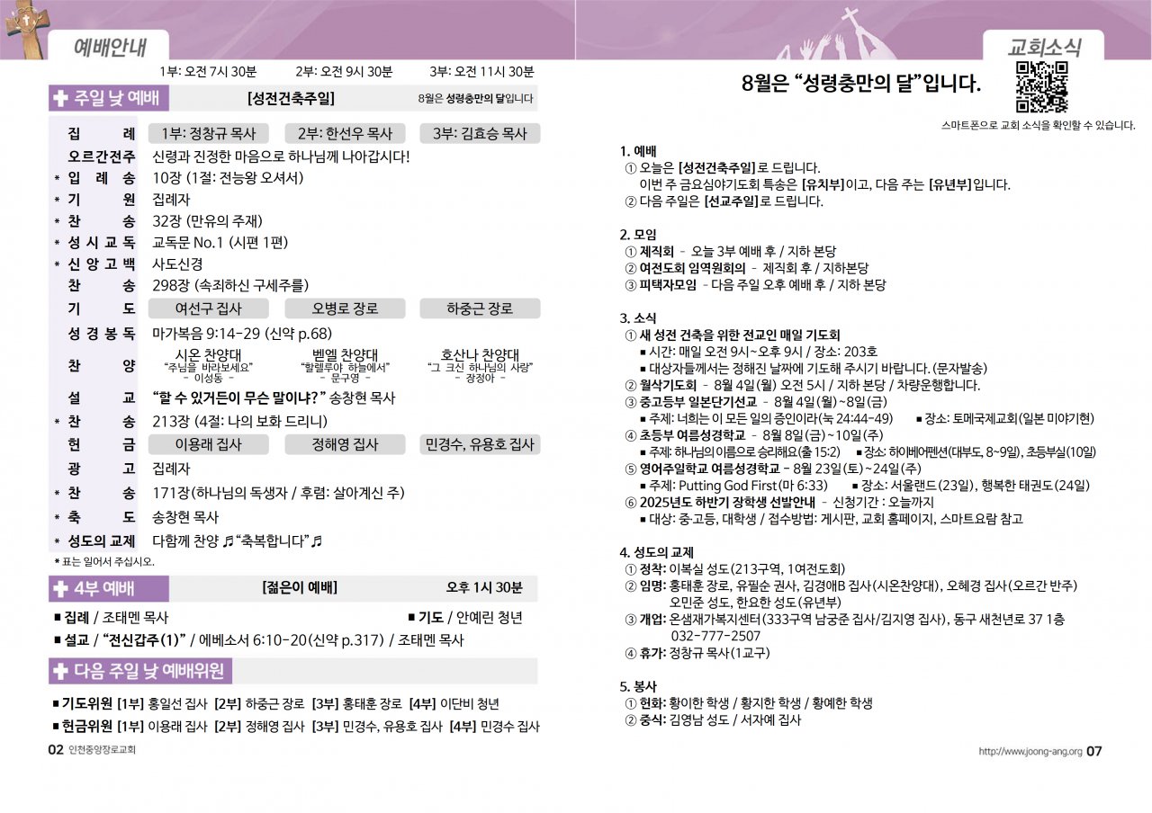 윗 글 : 2025년 8월 10일(주) 교회/교우 소식 (관리자)