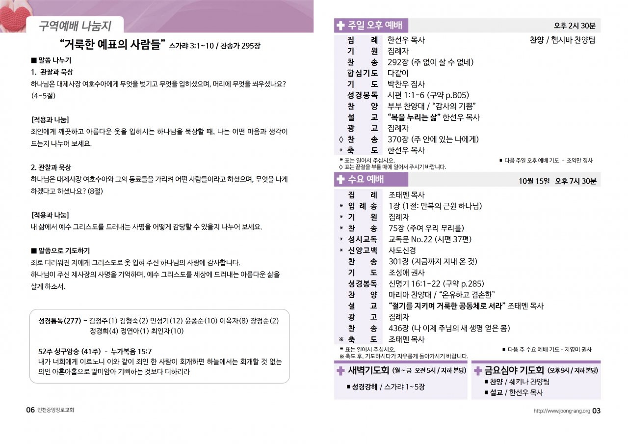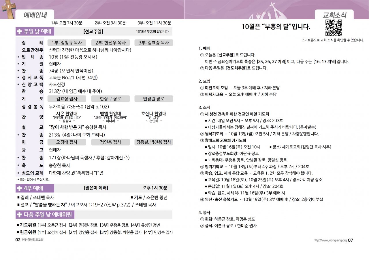 2025년 10월 12일(주) 교회/교우 소식