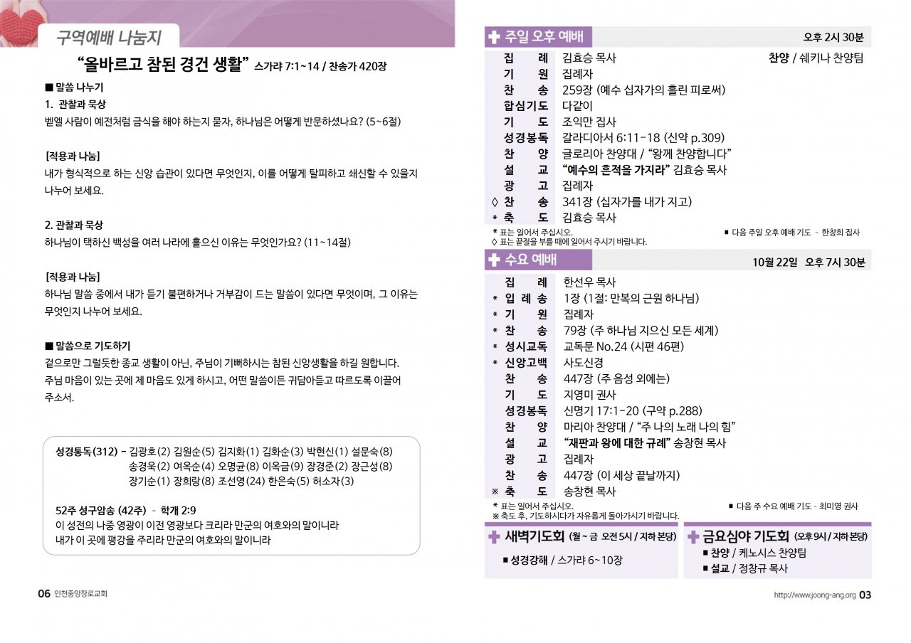 2025년 10월 19일(주) 교회/교우 소식