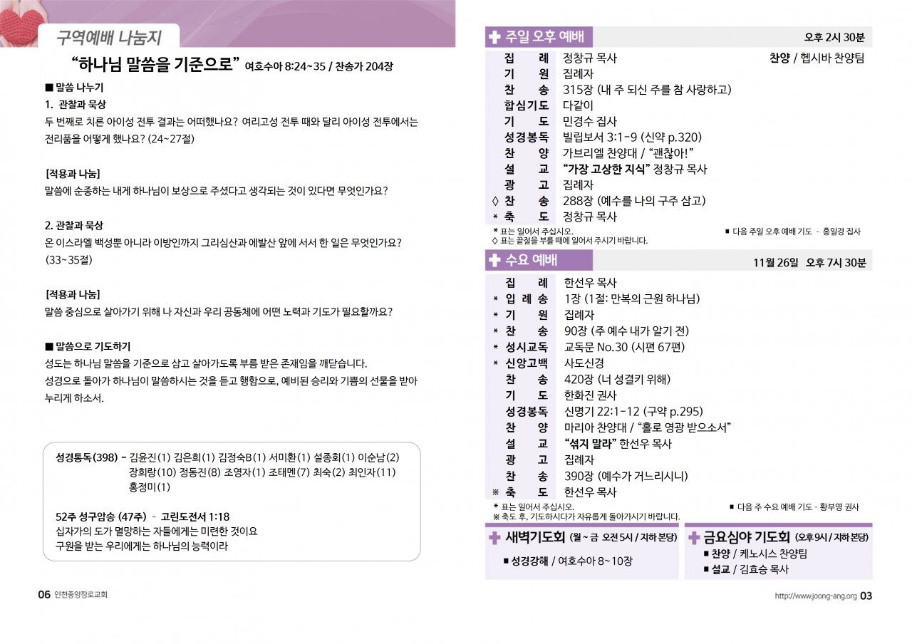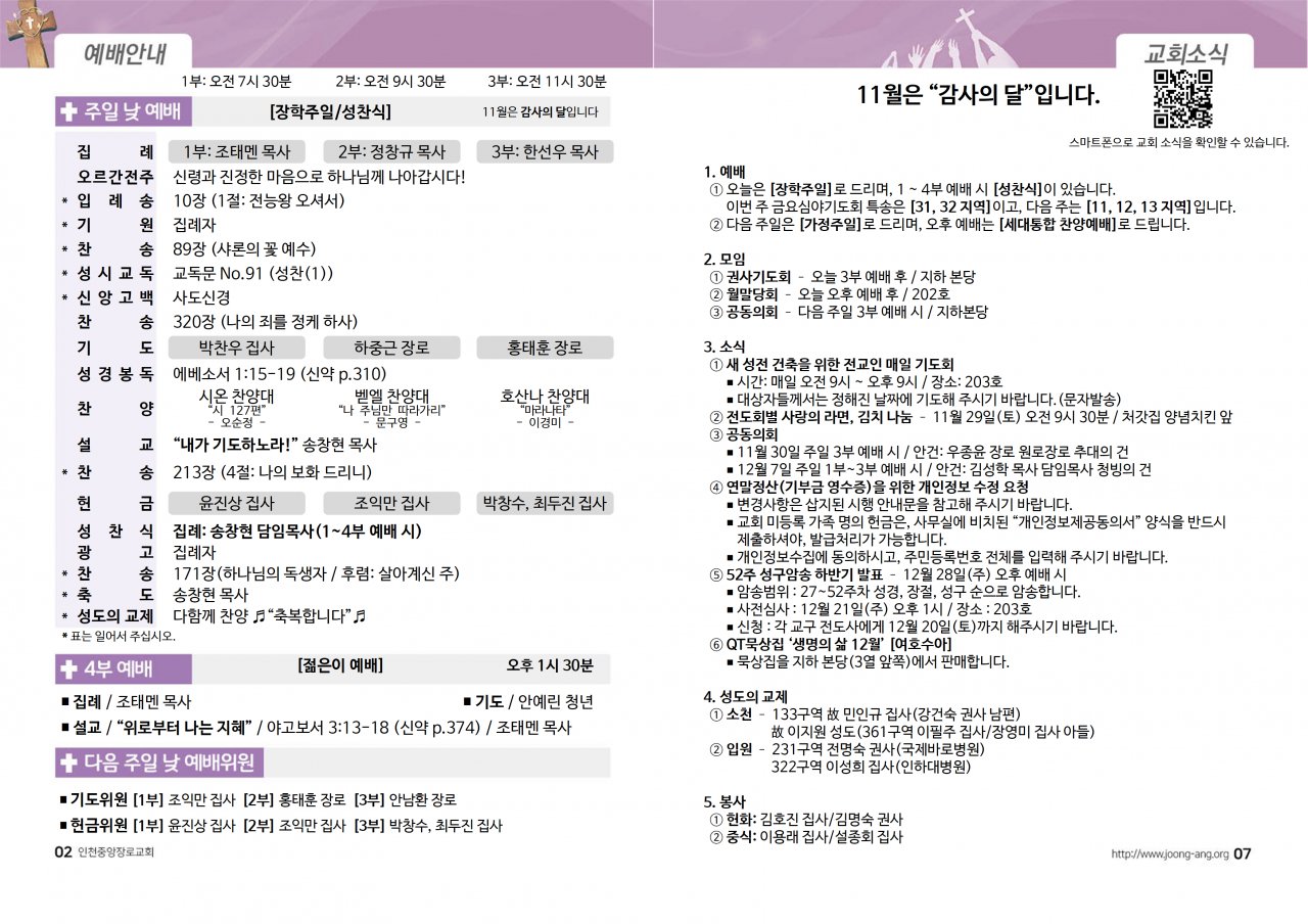 2025년 11월 23일(주) 교회/교우 소식