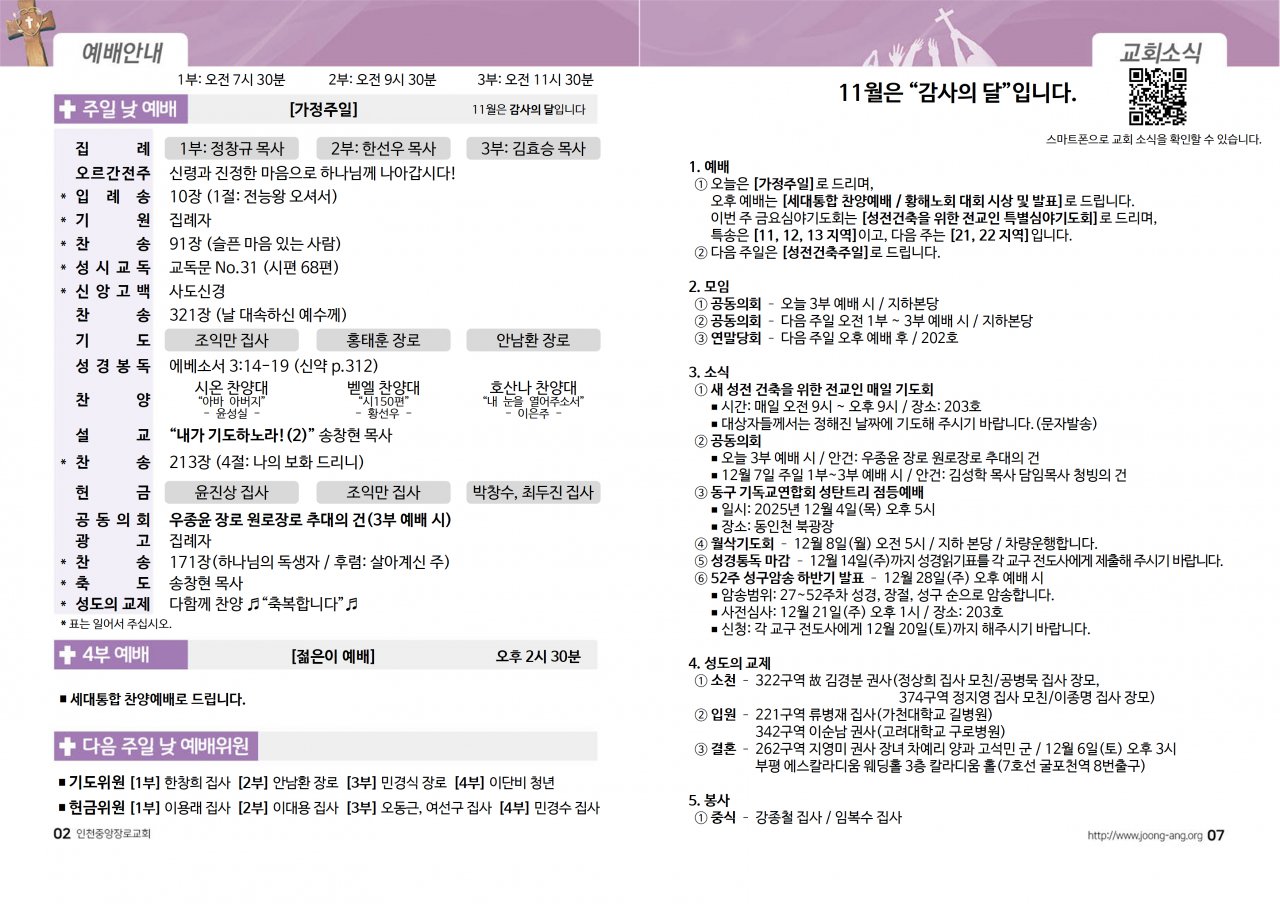 2025년 11월 30일(주) 교회/교우 소식