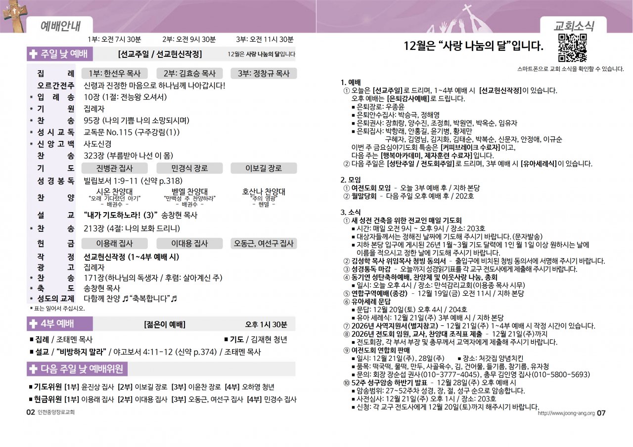 윗 글 : 2025년 12월 21일(주) 교회/교우 소식 (관리자)