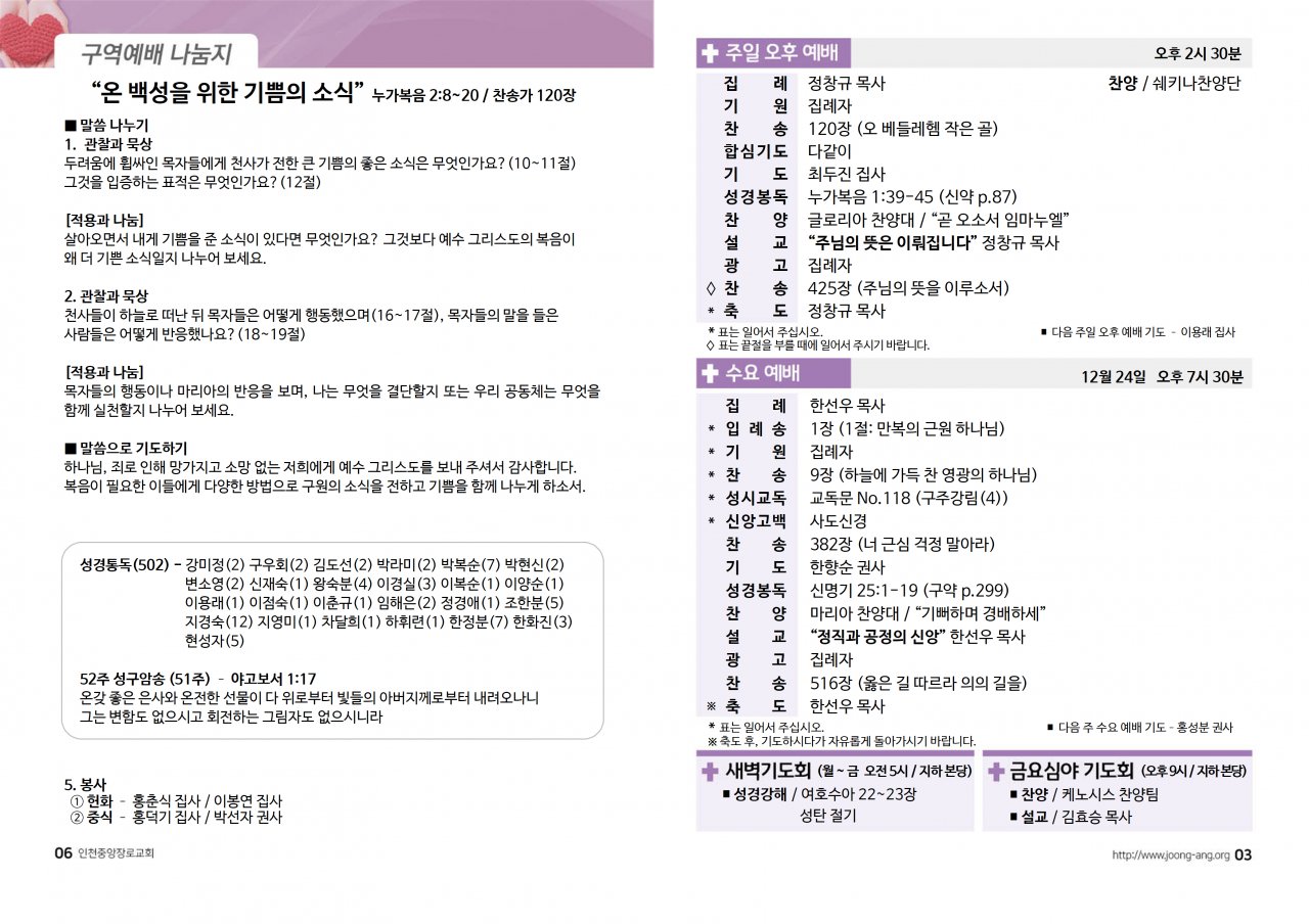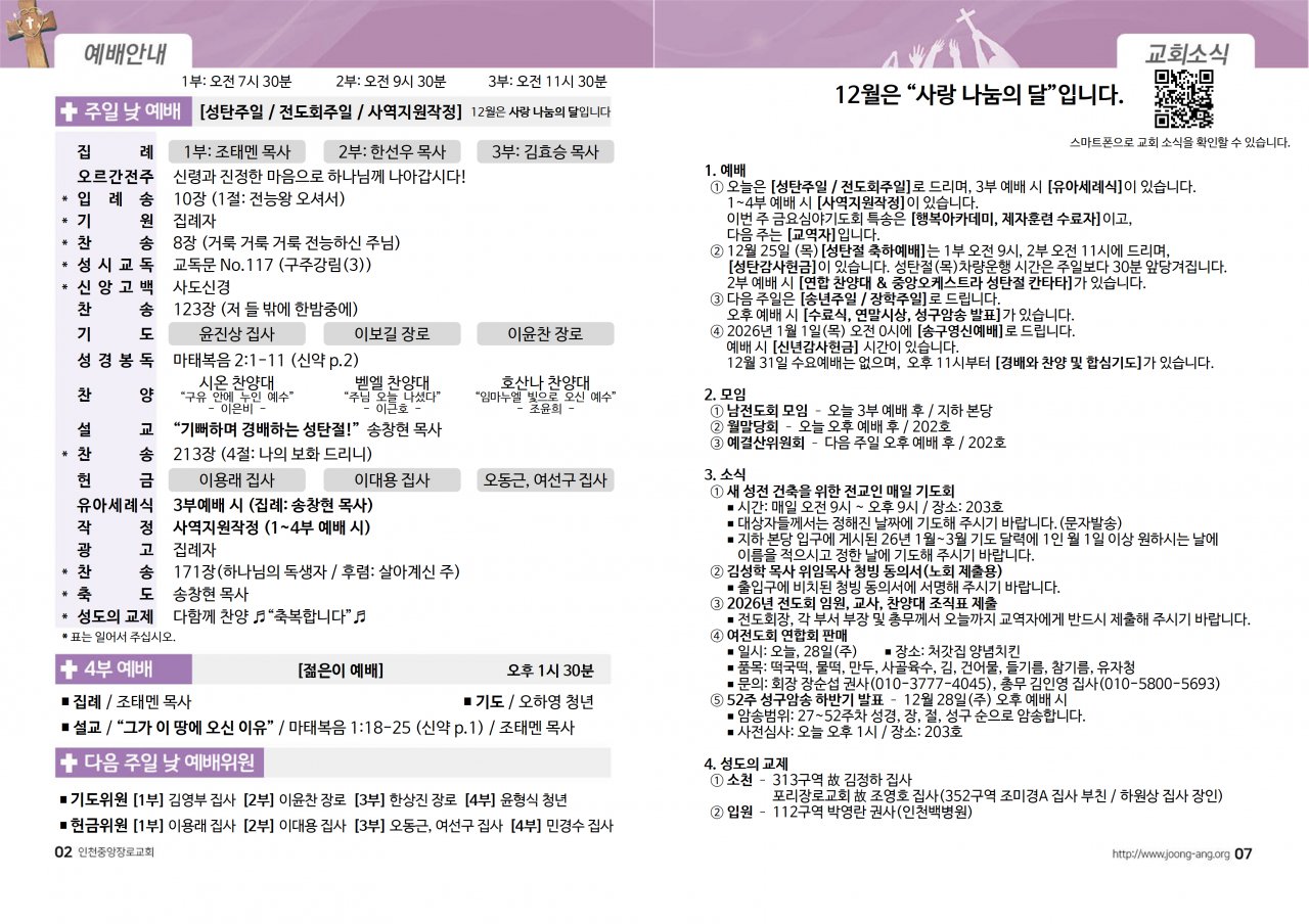 2025년 12월 21일(주) 교회/교우 소식