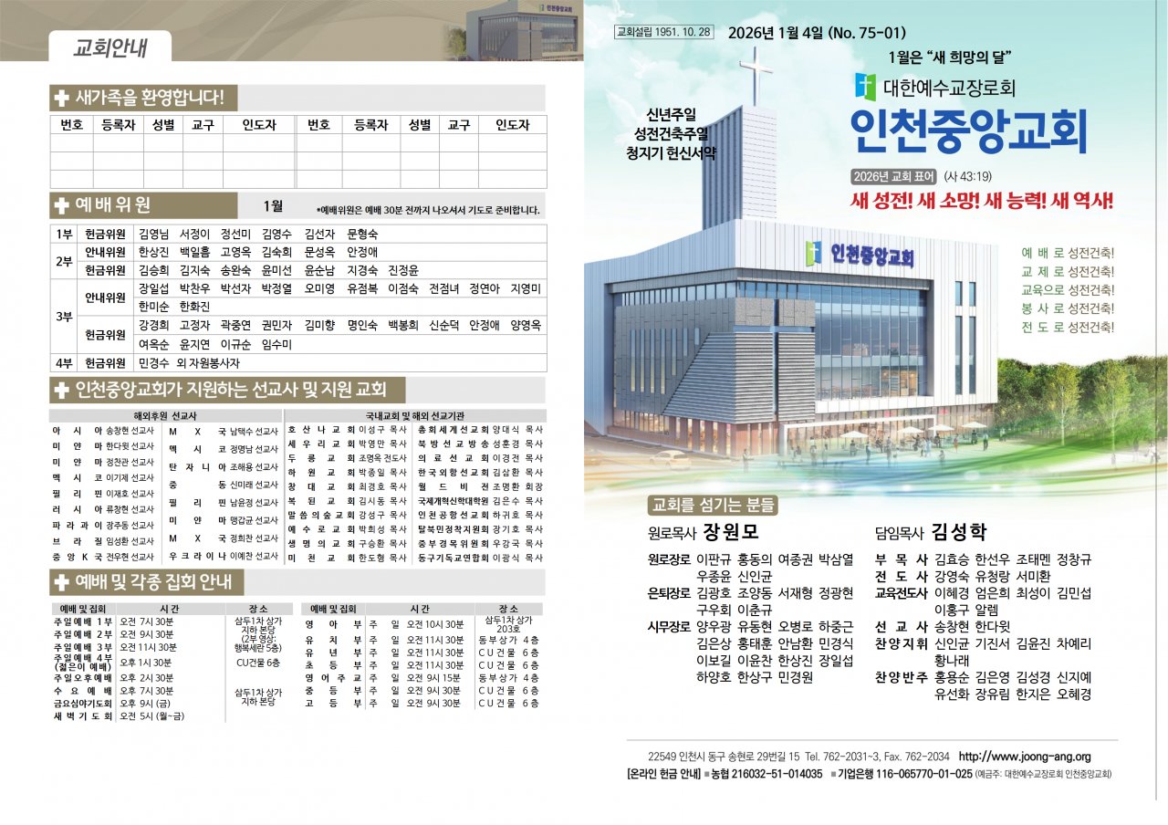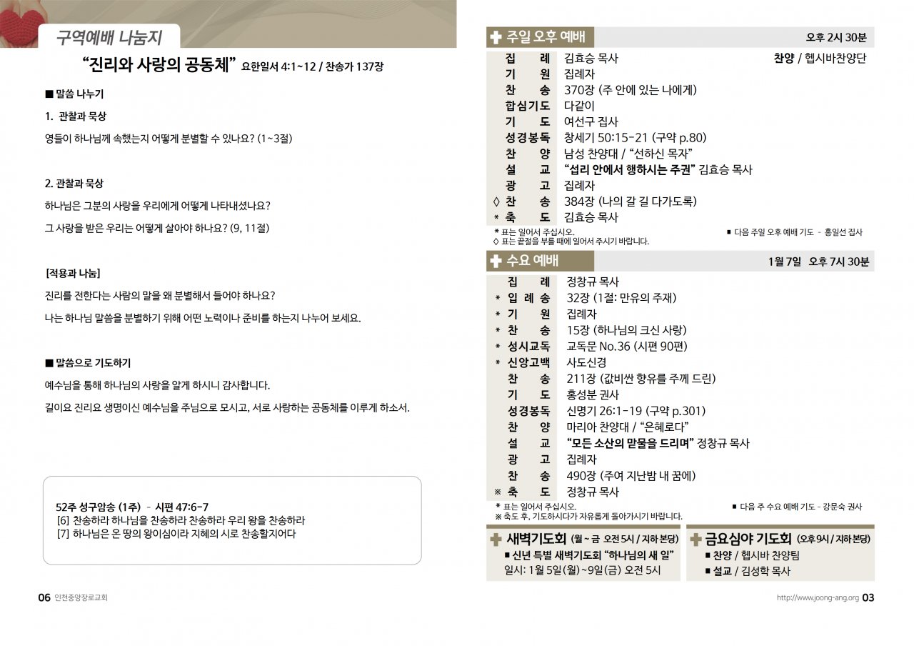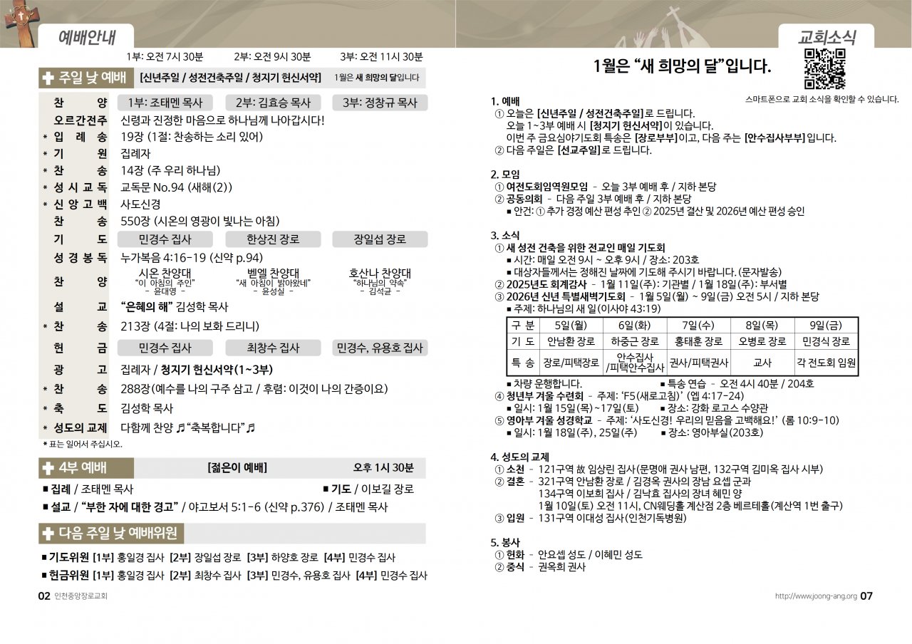2026년 1월 4일(주) 교회/교우 소식