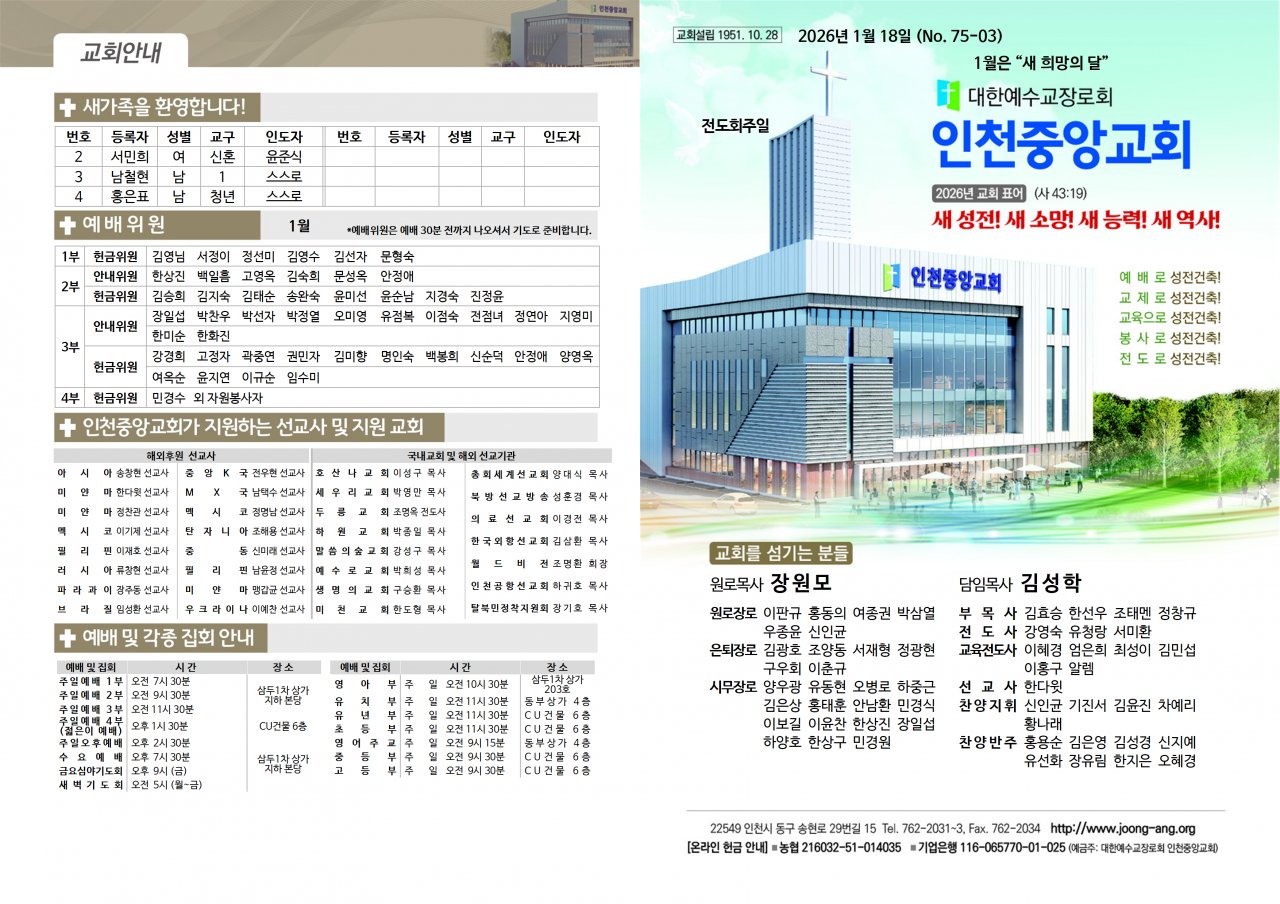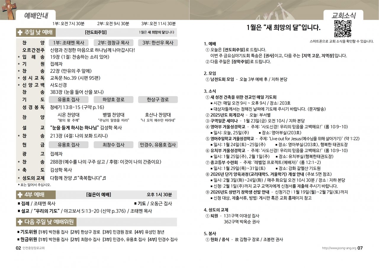 2026년 1월 18일(주) 교회/교우 소식