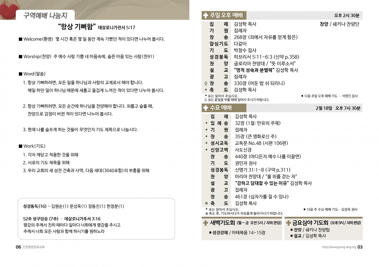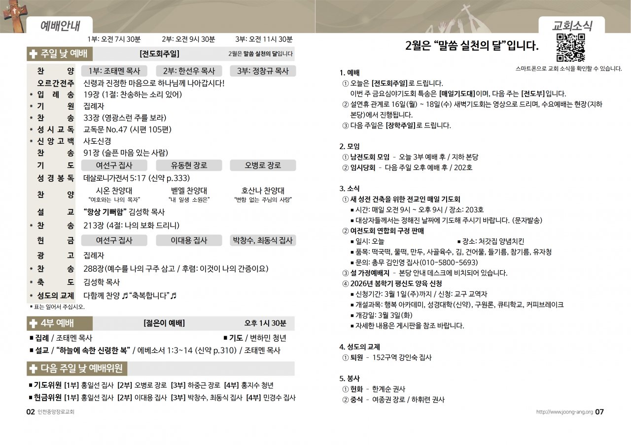 2026년 2월 15일(주) 교회/교우 소식