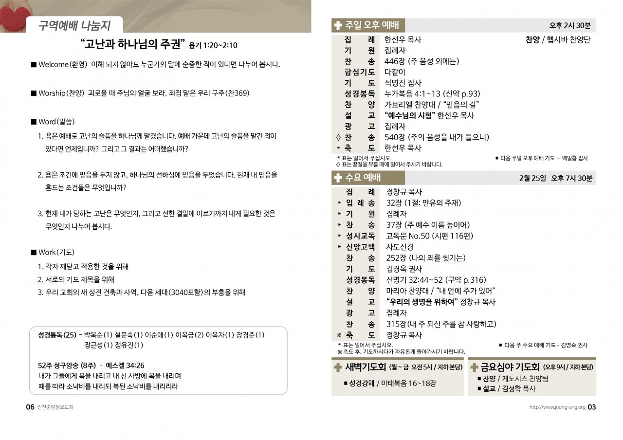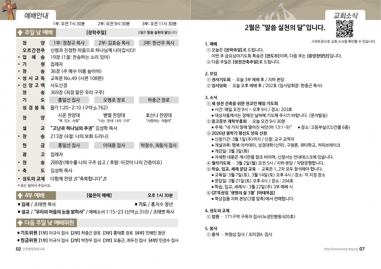 2026년 2월 22일(주) 교회/교우 소식