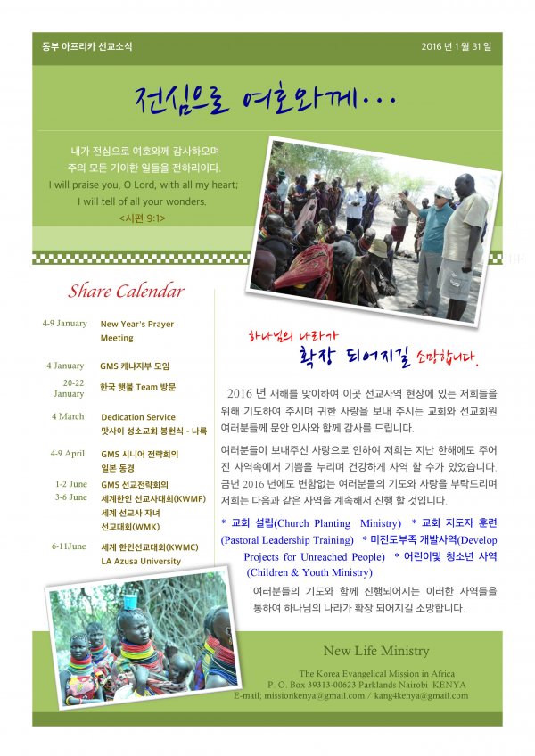 케냐 선교소식 2016-1-31