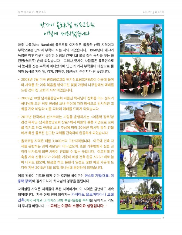 케냐 선교소식 2016-3-10