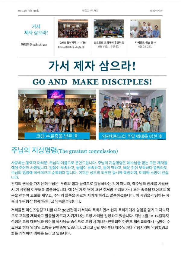 MX국 정희찬/박해경 선교사 기도편지입니다. (24년 6월)