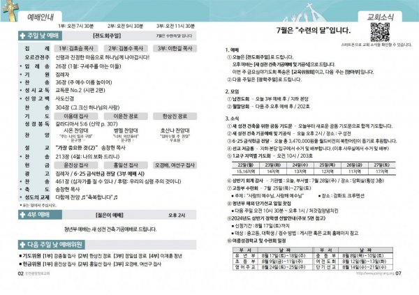 날짜: 2024.07.05 글쓴이 : 관리자 | 교회/교우 소식