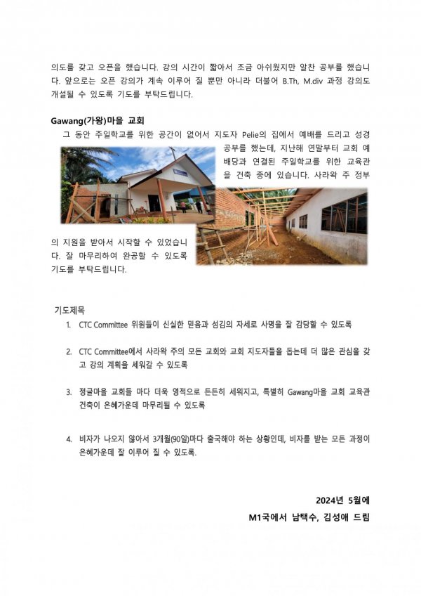 M국 남택수 선교사 기도편지입니다.(24년 5월)