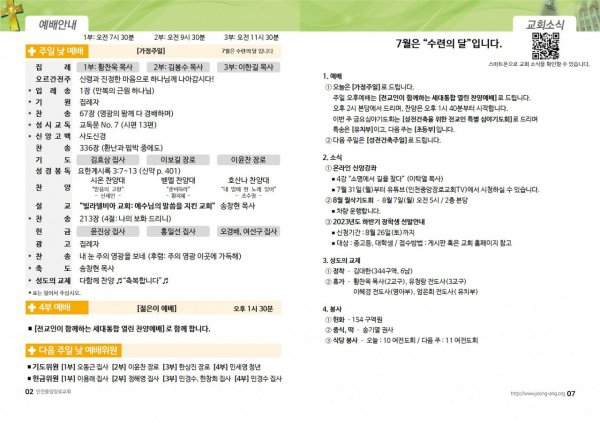 2023년 7월 2일(주) 교회/교우 소식