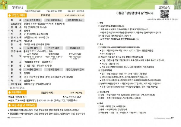 2023년 8월 6일(주) 교회/교우 소식