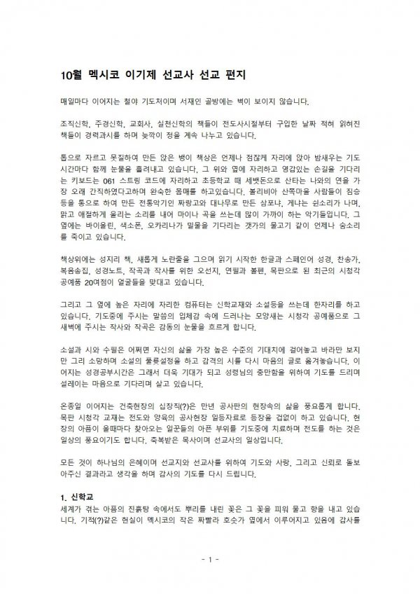 멕시코 이기제 선교사님 선교편지(10월)