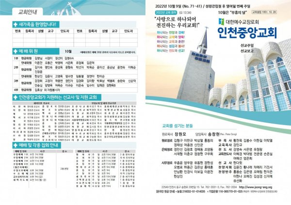 날짜: 2022.10.01 글쓴이 : 관리자 | 교회/교우 소식